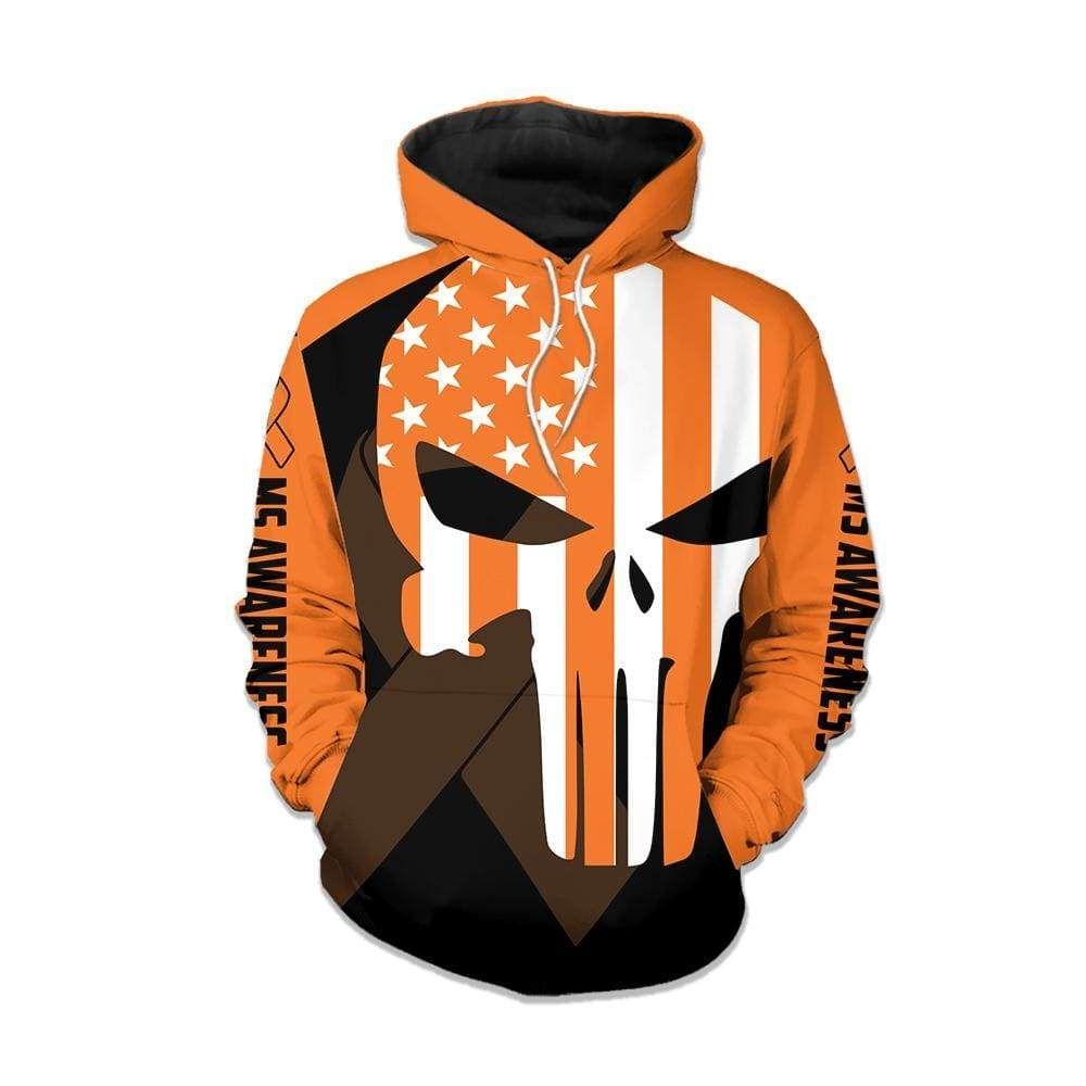 Ms Awareness Skull Orange Ribbon Hoodie For Couple 3D All Over Print