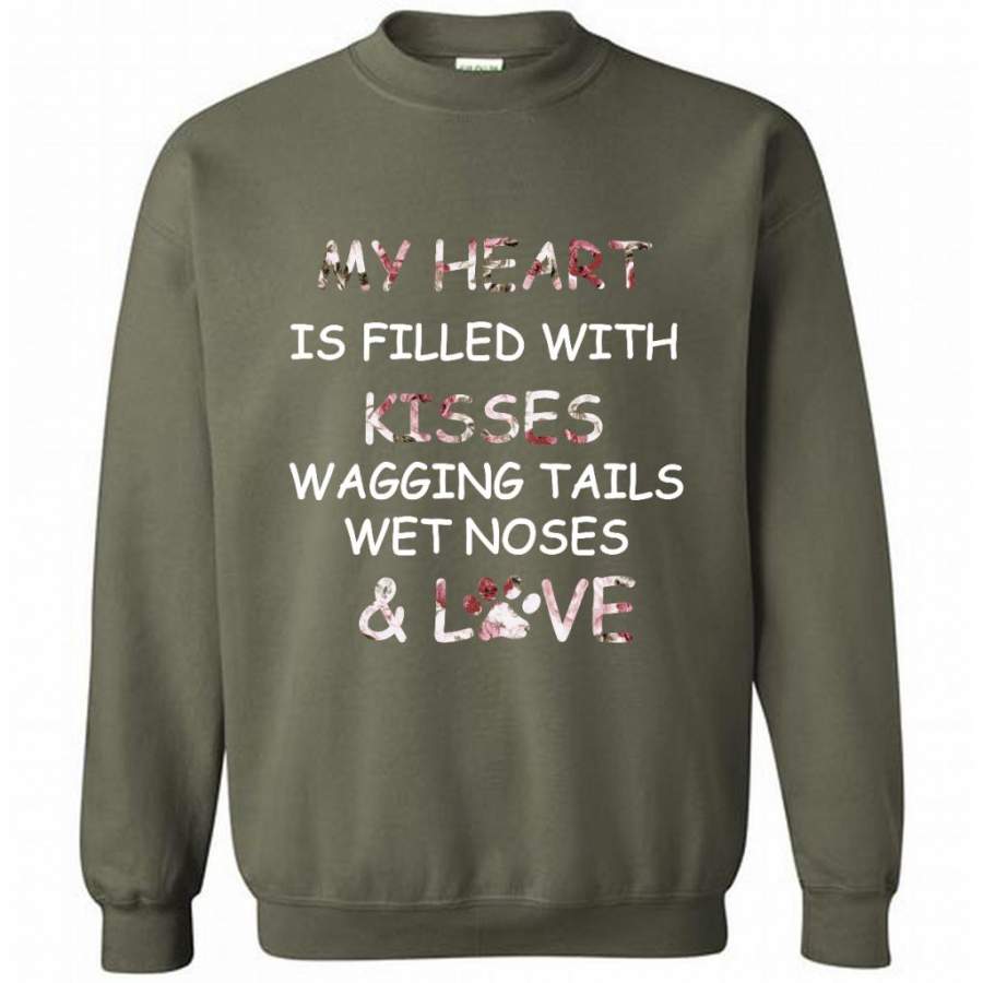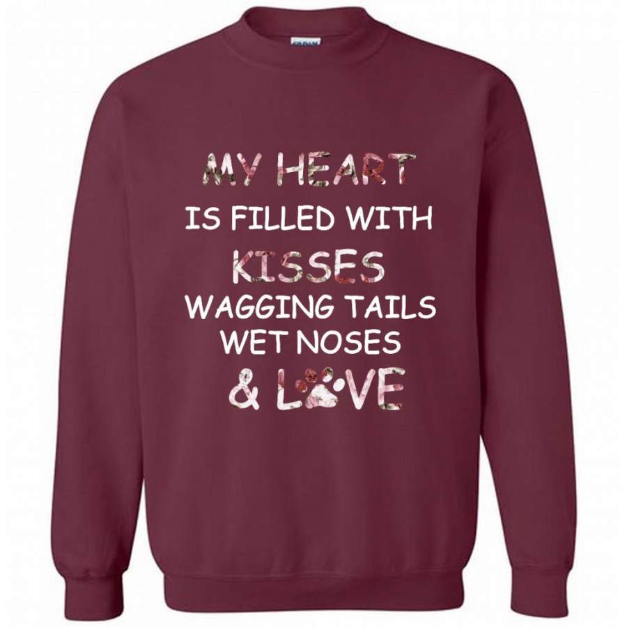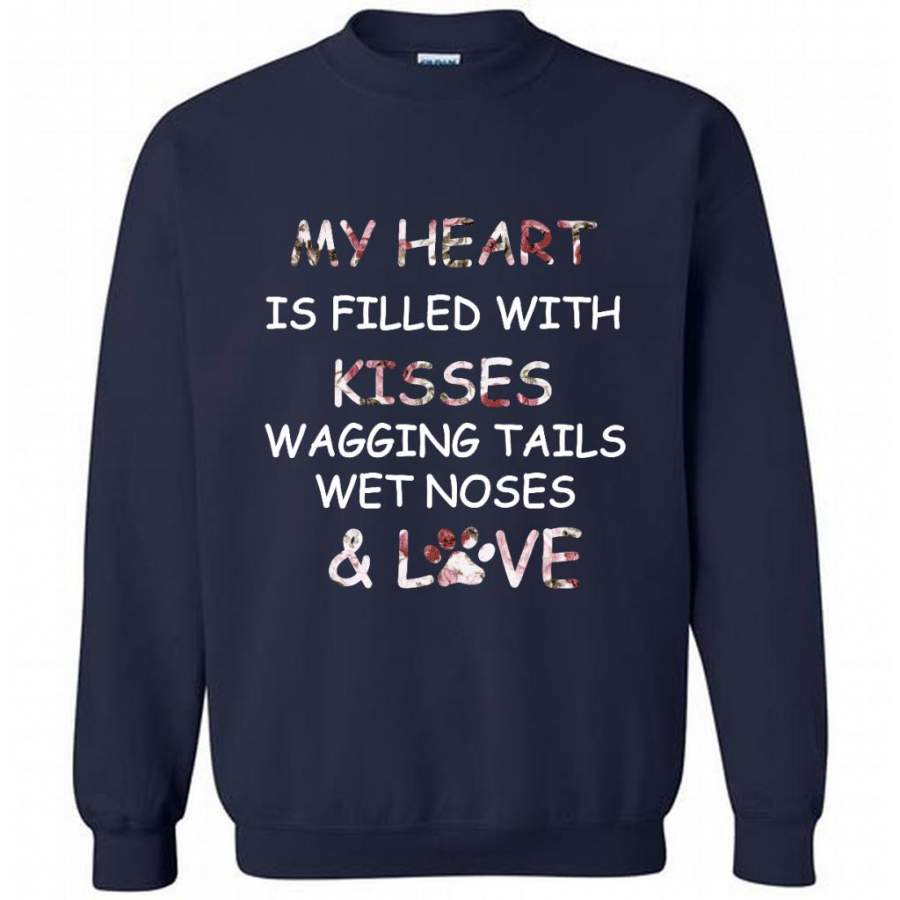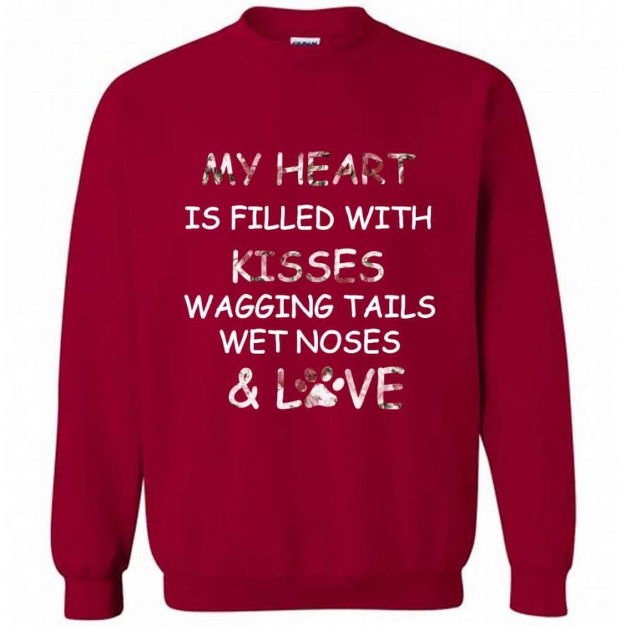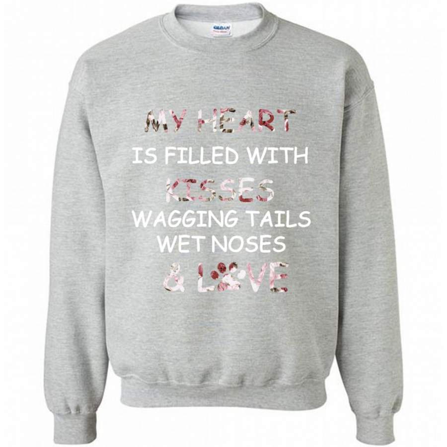 My Heart Is Filled With Kisses Wagging Tails Wet Noses And Love, Dog Lover – Gildan Crewneck Sweatshirt