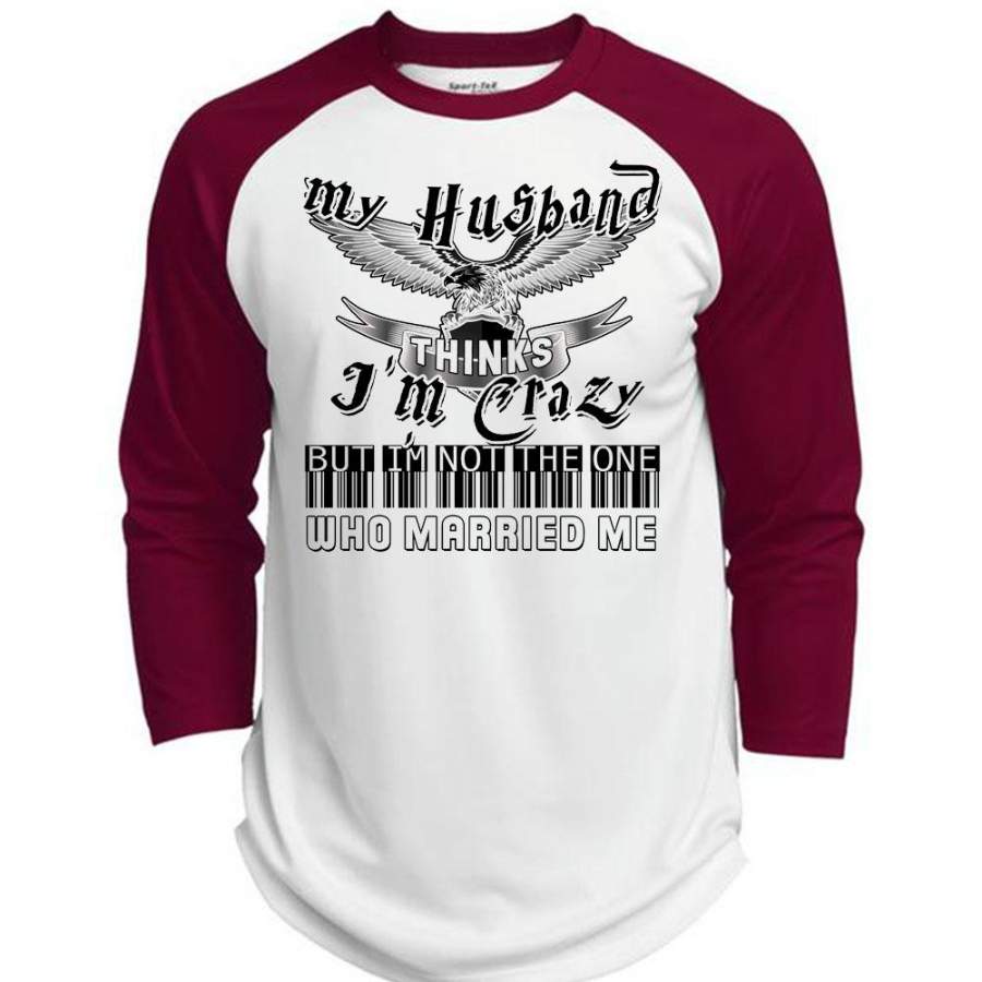 My Husband Thinks I’m Crazy T Shirt, I Love My Husband T Shirt, Awesome T-Shirts (Polyester Game Baseball Jersey)