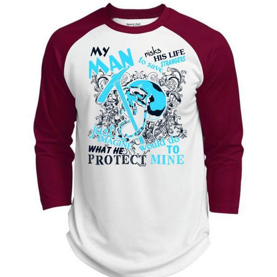 My Man Risks His Life T Shirt, I Love Mining T Shirt, Awesome T-Shirts (Polyester Game Baseball Jersey)
