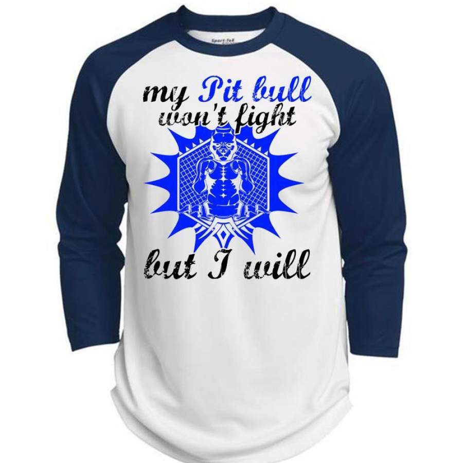 My Pit Bull Won’t Fight But I Will T Shirt, I Love My Pit Bull T Shirt, Awesome T-Shirts (Polyester Game Baseball Jersey)