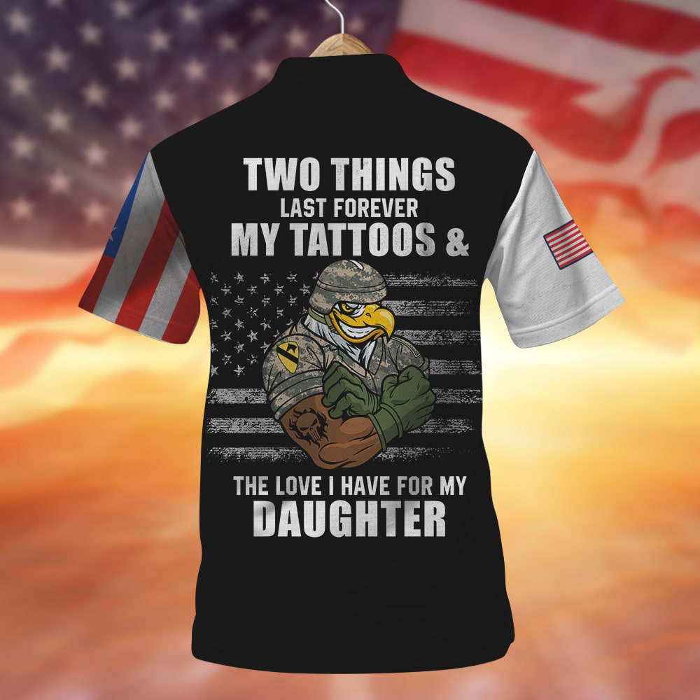 My Tattoos And The Love I Have For My Daughter, Personalized Polo Shirt, Military Gifts For Dads, Custom Military Unit