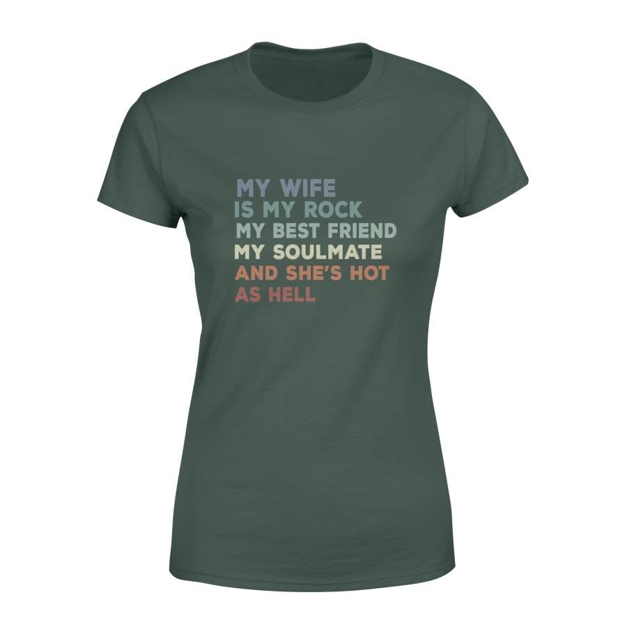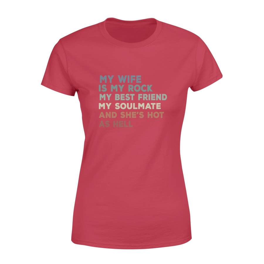My Wife Is My Rock My Best Friend My Soulmate And Shes Hot As Hell Love Valentine Women’s T-shirt