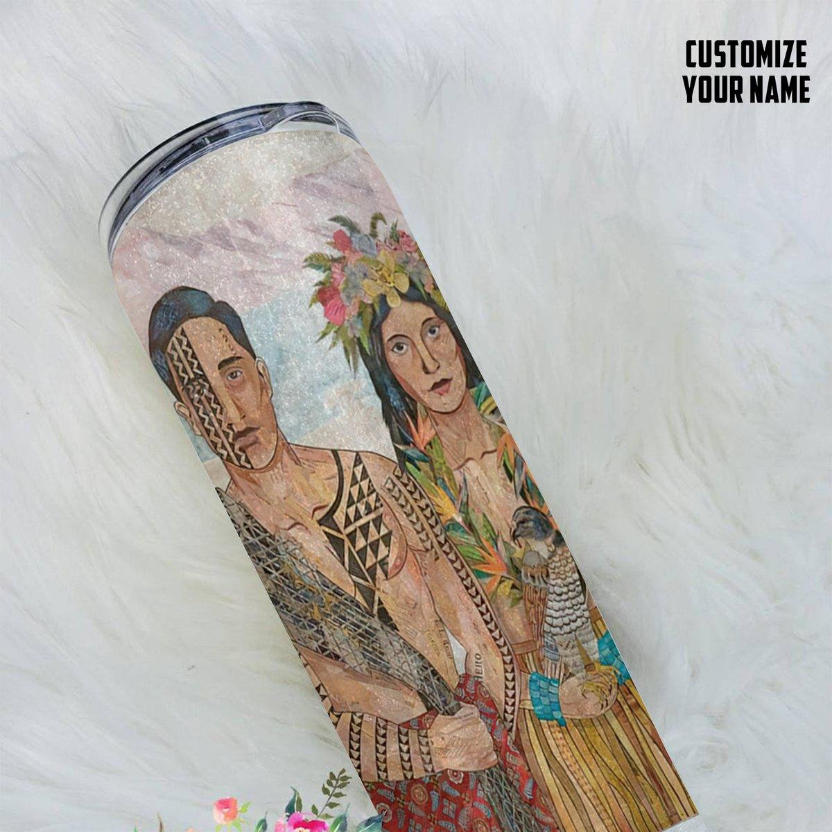 Mysticlife Mysticlife 3D Hawaiian Couple Custom Name Tumbler