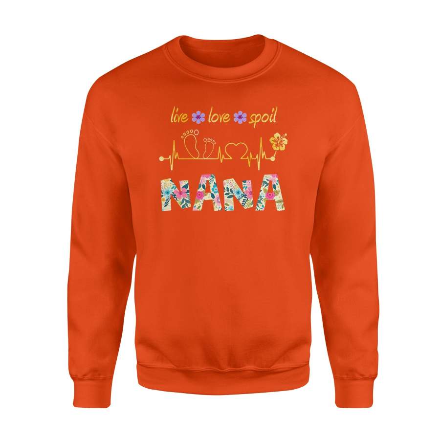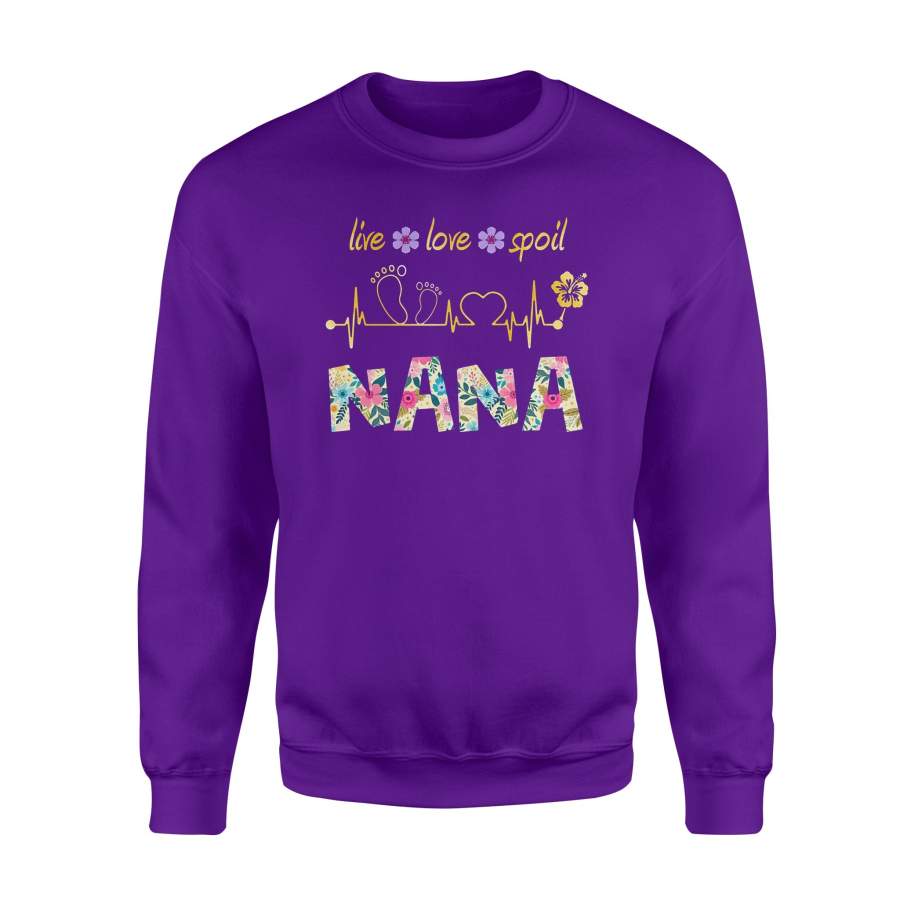 So whether you're looking to show off your own name or create a personalized gift for someone special, LateAndLow Store has got you covered. Start designing your own custom Nana Live Love Spoil – Sweatshirt print-on-demand product today, and let us bring your vision to life!