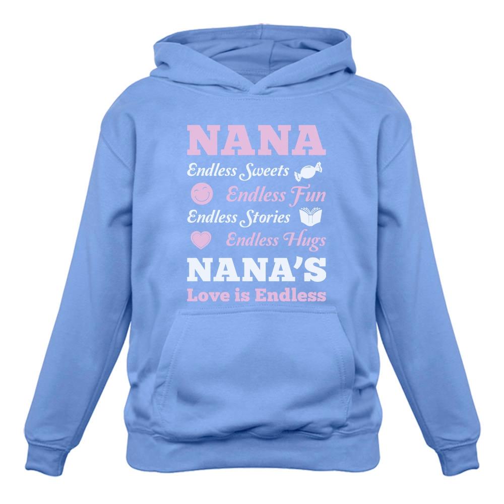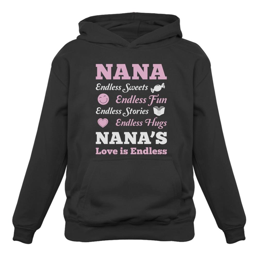 So whether you're looking to show off your own name or create a personalized gift for someone special, LateAndLow Store has got you covered. Start designing your own custom Nana’S Love Is Endless Women Hoodie print-on-demand product today, and let us bring your vision to life!