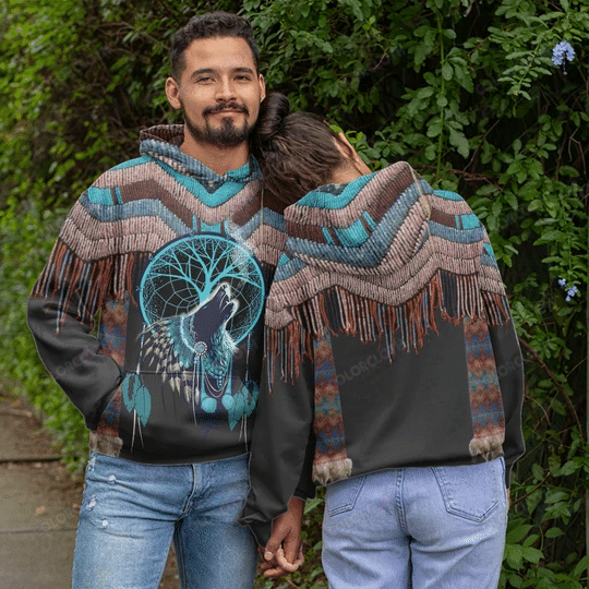 Native Wolf Dreamcatcher Tribal Couple Hoodie Ht250103