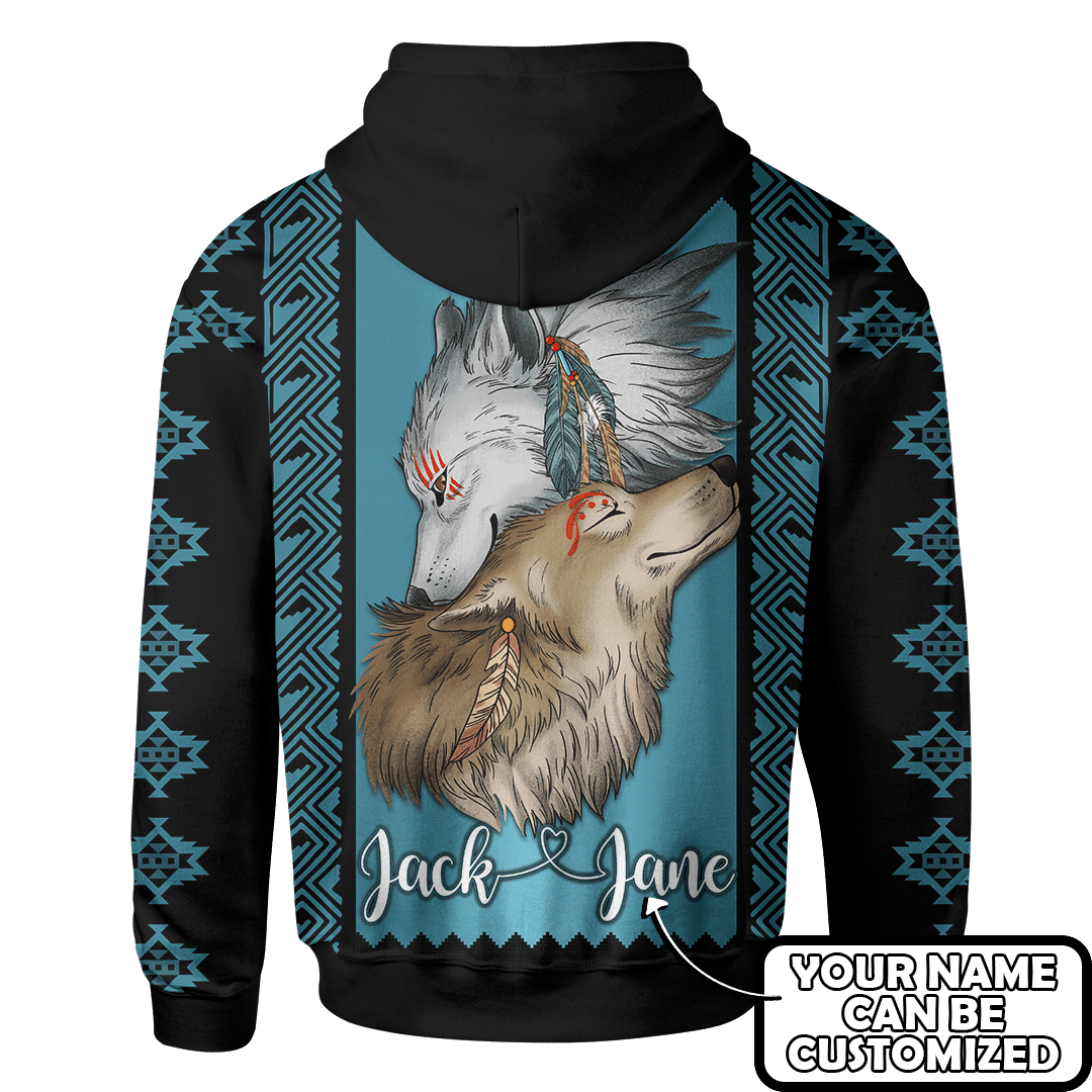 So whether you're looking to show off your own name or create a personalized gift for someone special, LateAndLow Store has got you covered. Start designing your own custom Native Wolf Native American Pattern Customized For Couple 3D All Over Printed Hoodie print-on-demand product today, and let us bring your vision to life!