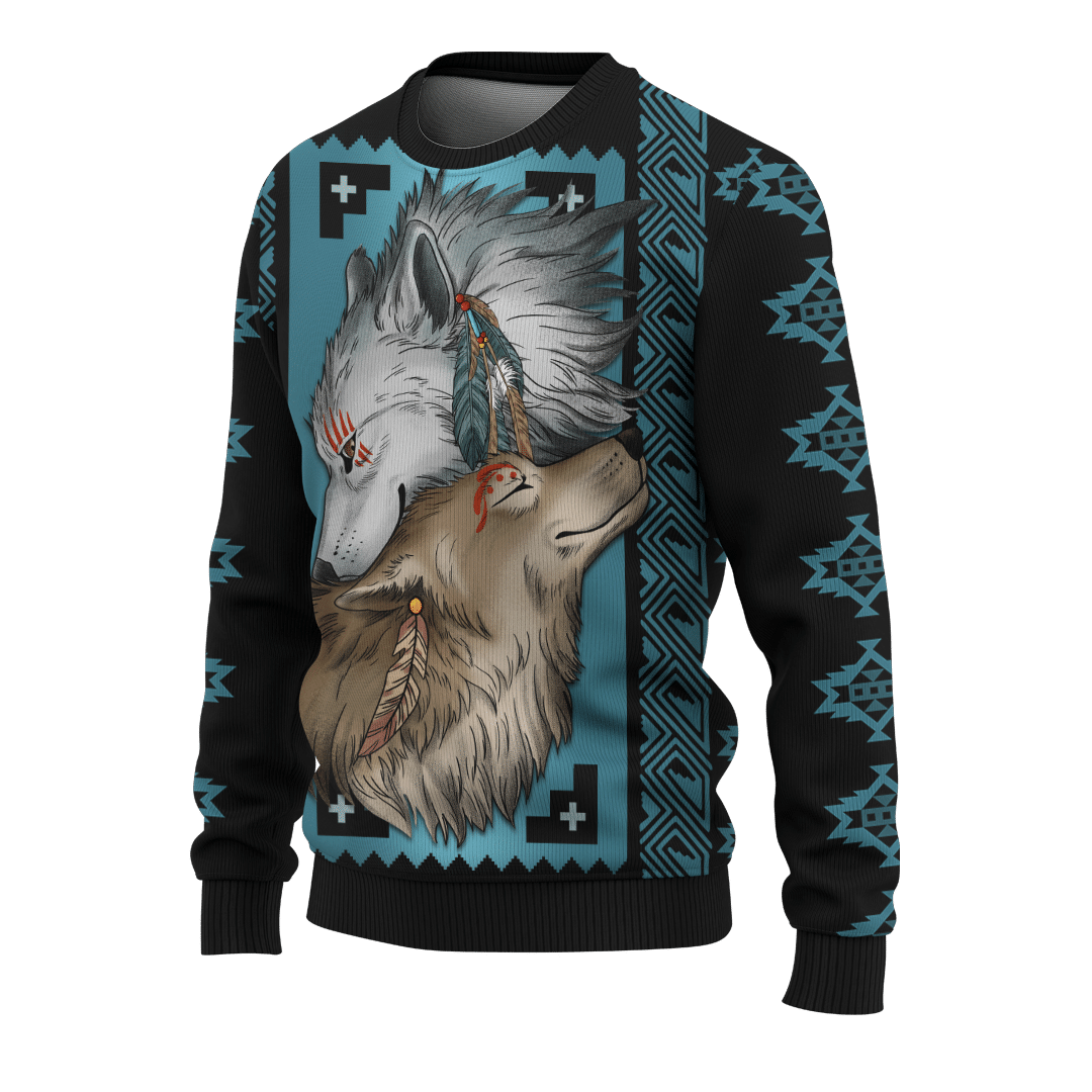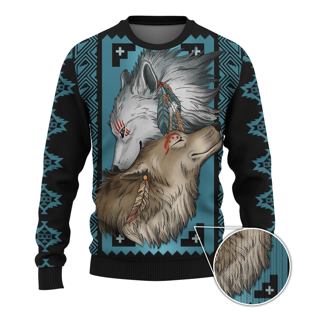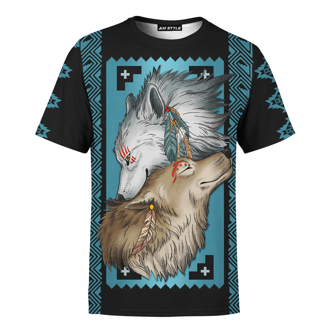 Native Wolf Native American Pattern Customized For Couple 3D All Over Printed Hoodie