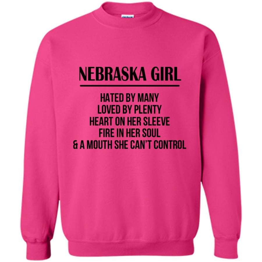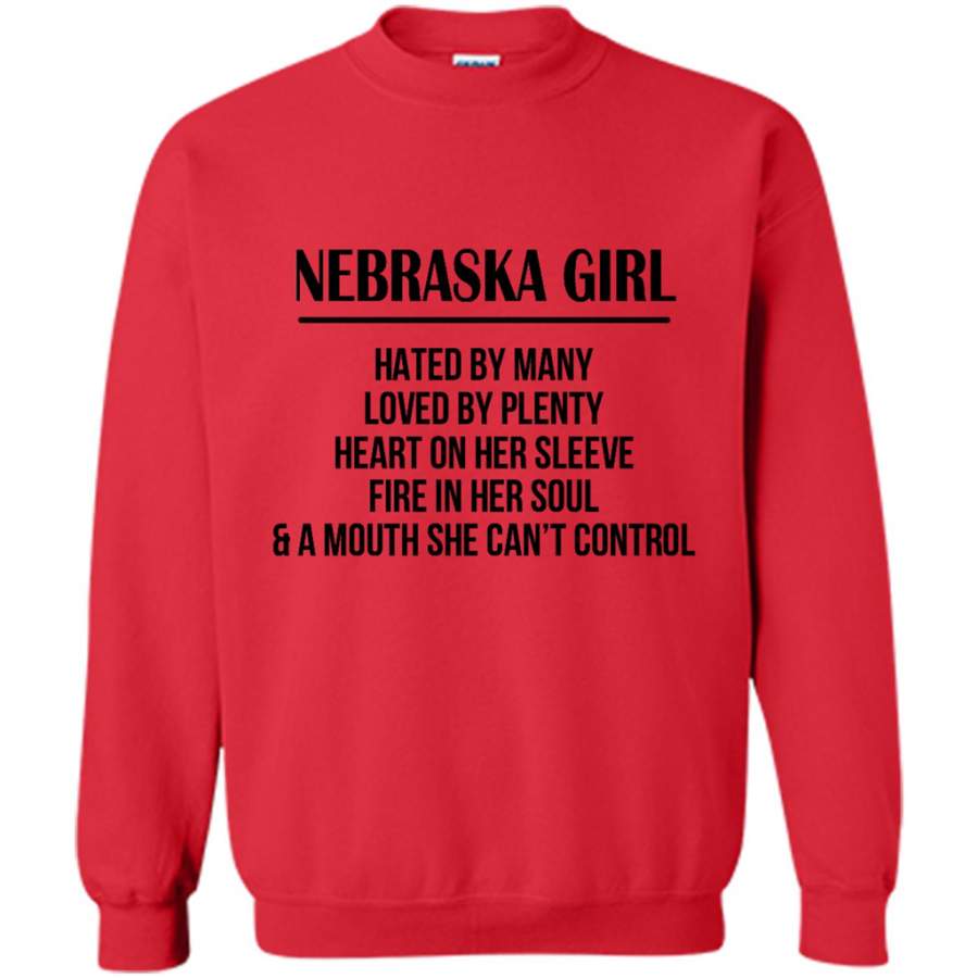 Nebraska Girl Hated By Many Loved By Plenty Heart On Her Sleeve Fire In Her Soul A Mouth She Can’t Control – Gildan Crewneck Sweatshirt