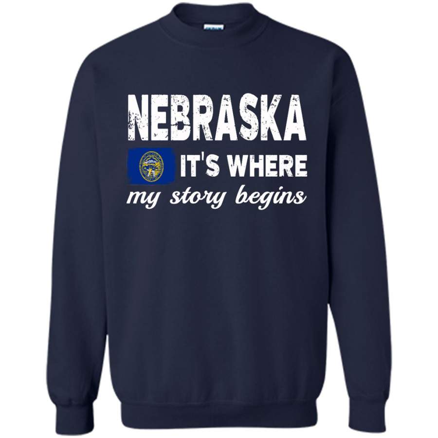 Nebraska States – It’s Where My Love Story Begins – Gildan Crewneck Sweatshirt