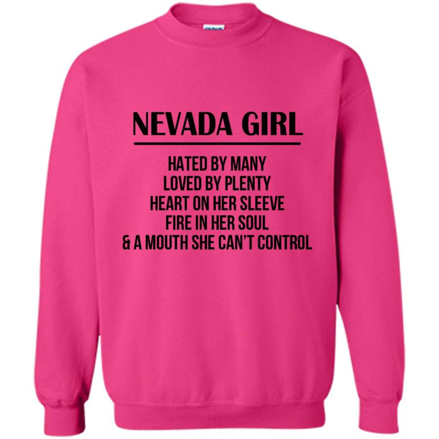 Nevada Girl Hated By Many Loved By Plenty Heart On Her Sleeve Fire In Her Soul A Mouth She Can’t Control – Gildan Crewneck Sweatshirt