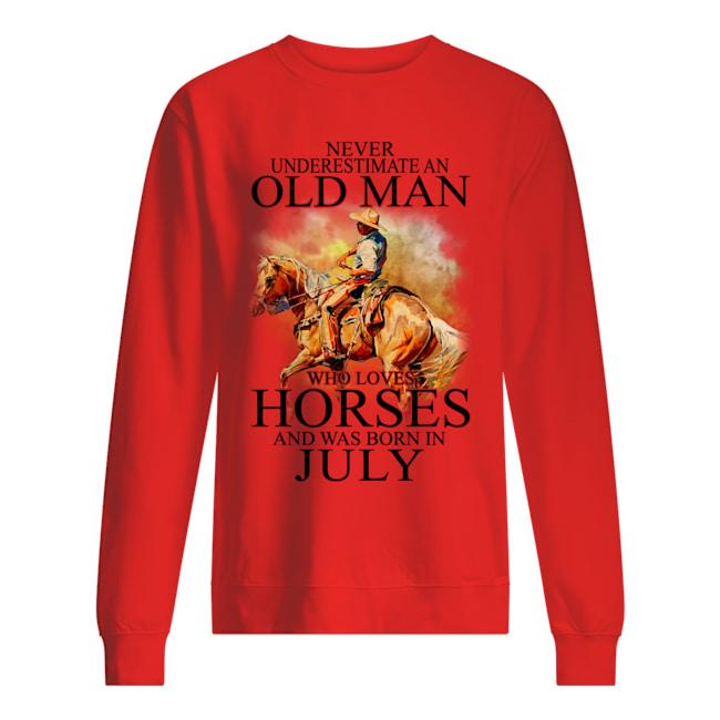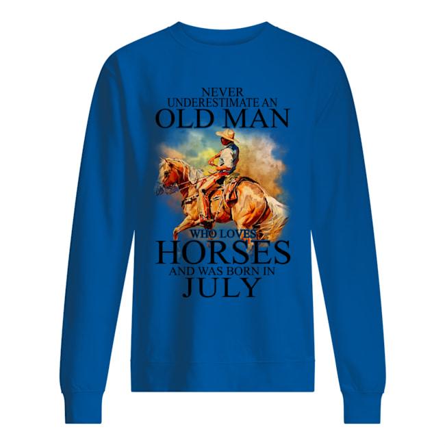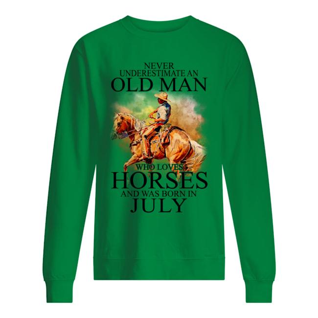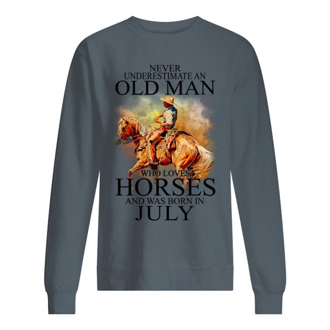 Never Underestimat An Old July Man Who Love Horses Sweatshirt