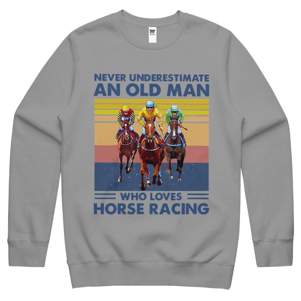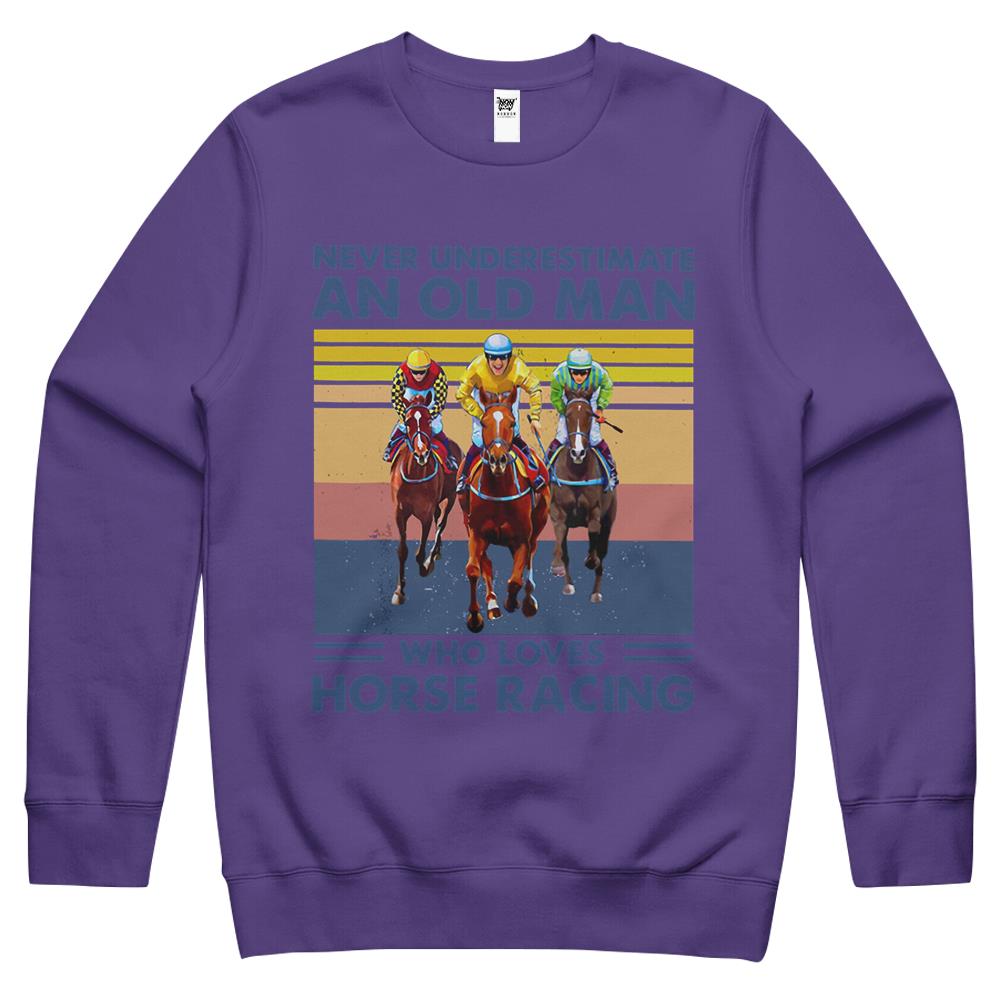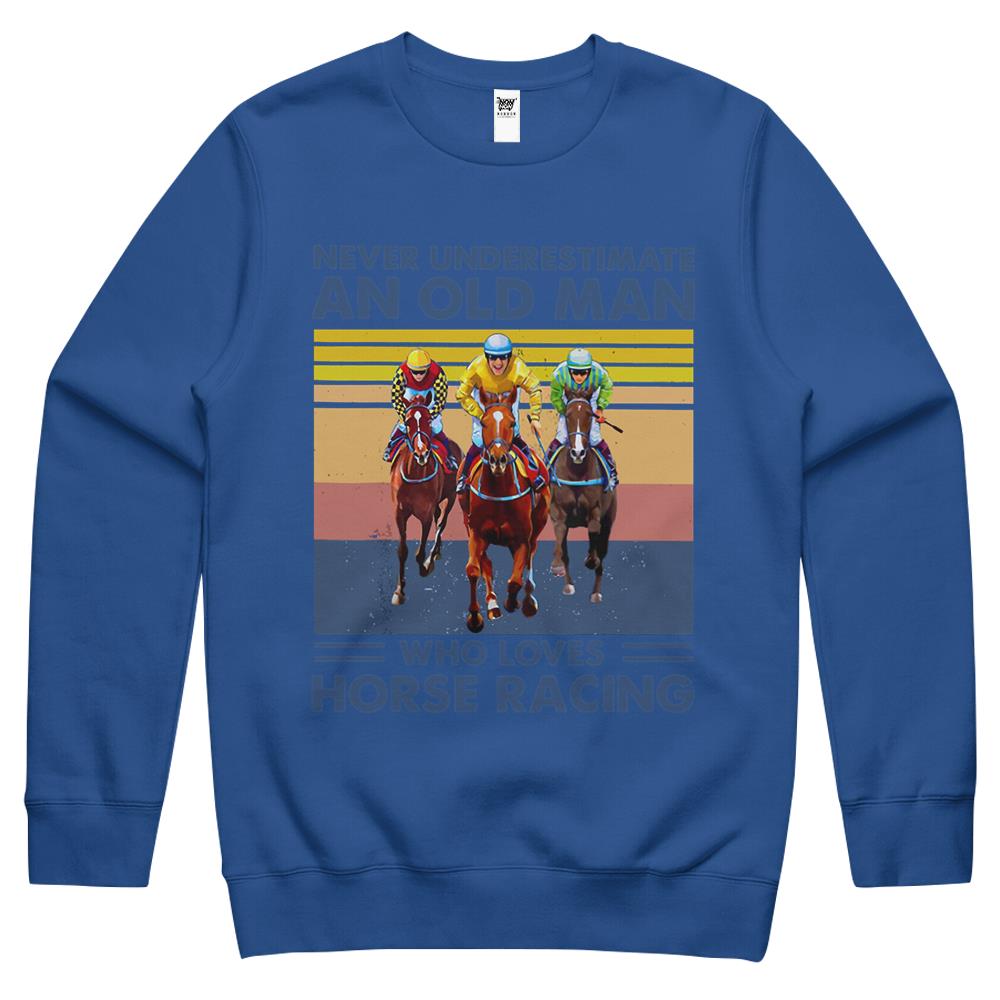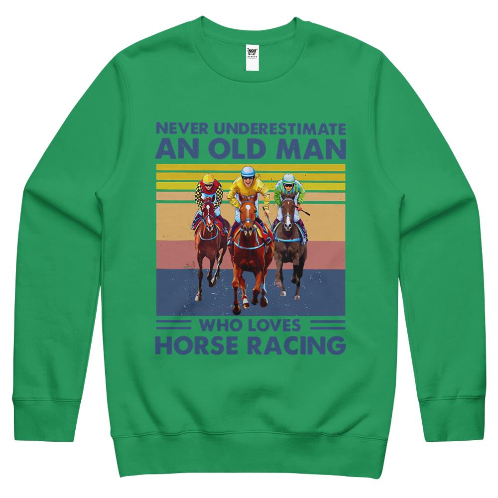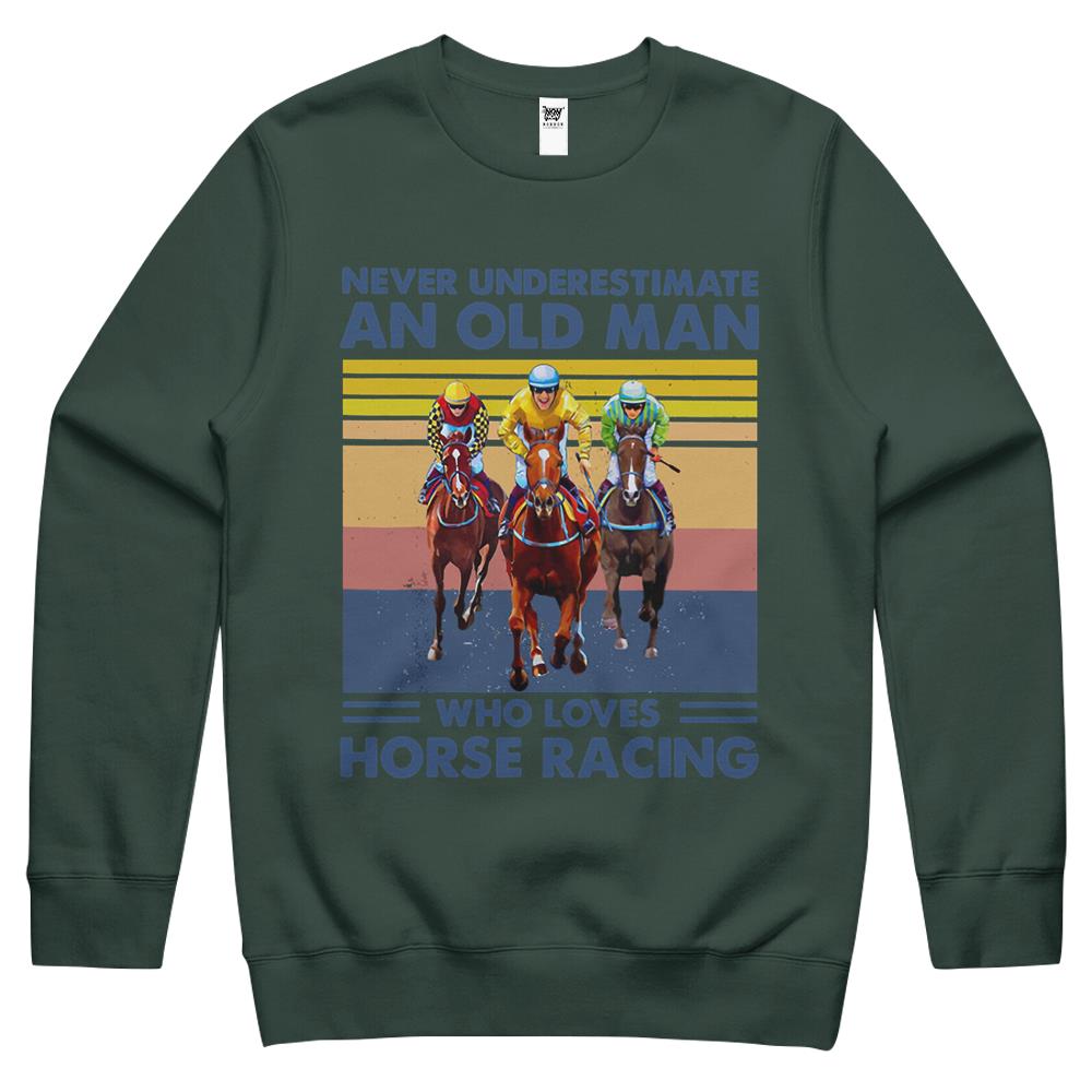 So whether you're looking to show off your own name or create a personalized gift for someone special, LateAndLow Store has got you covered. Start designing your own custom Never Underestimate An Old Man Who Loves Horse Racing Crewneck Sweatshirt print-on-demand product today, and let us bring your vision to life!