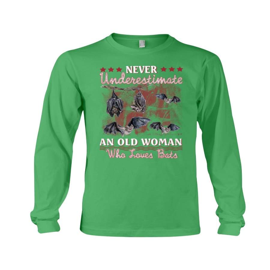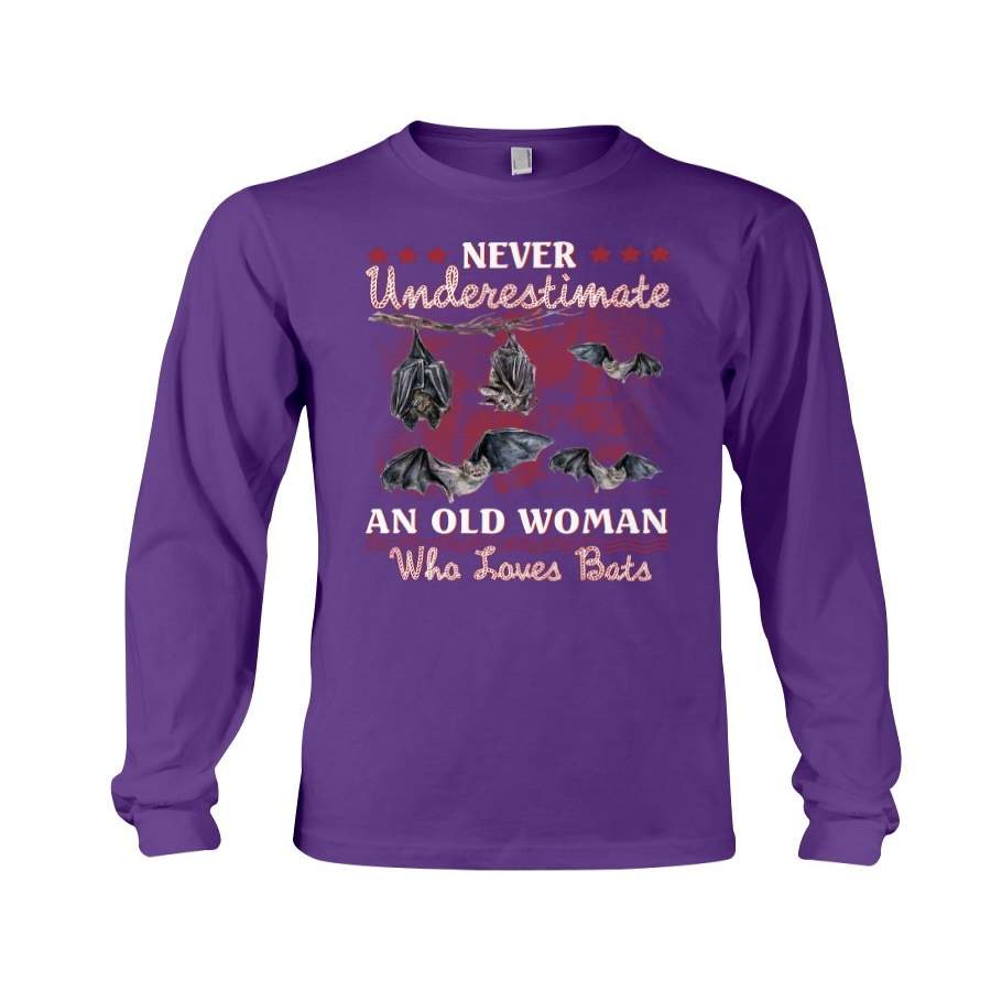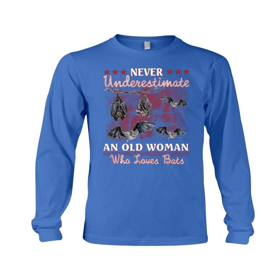 Never Underestimate An Old Woman Who Loves Bats Giving Bats Lovers Unisex Long Sleeve
