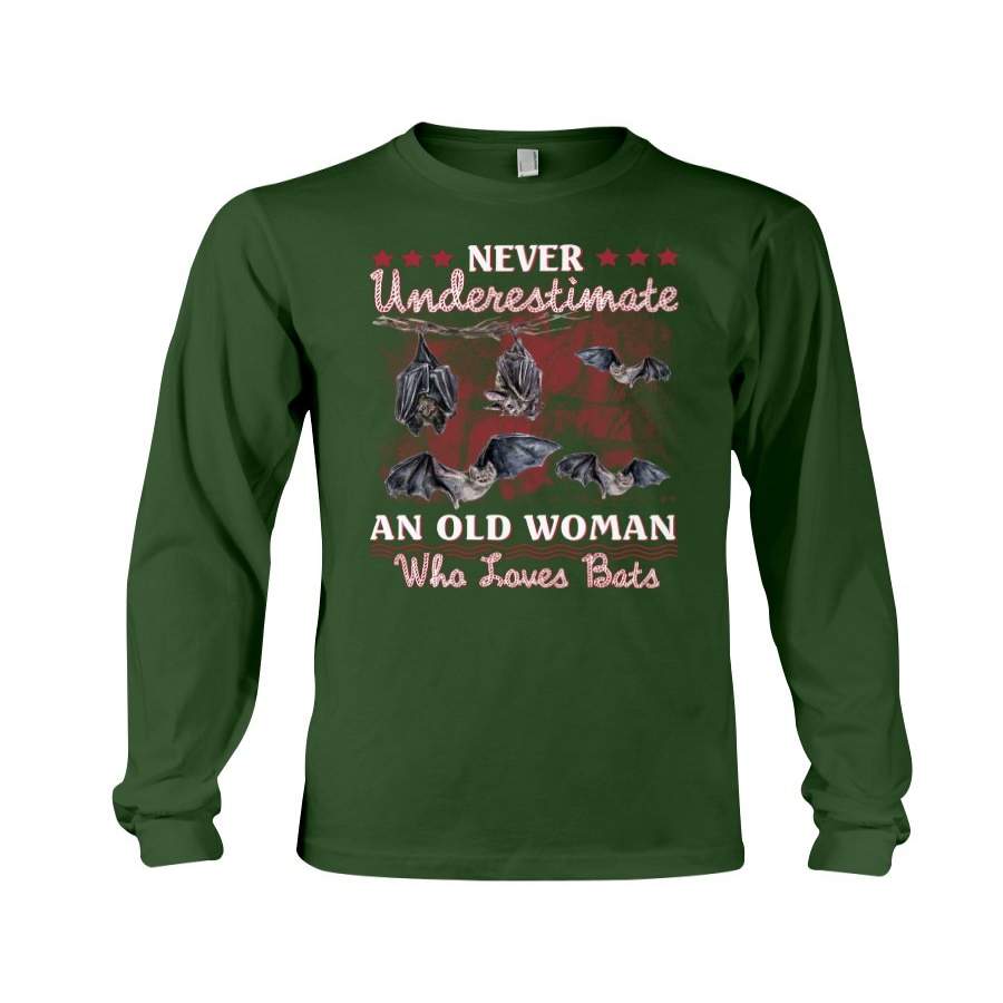 So whether you're looking to show off your own name or create a personalized gift for someone special, LateAndLow Store has got you covered. Start designing your own custom Never Underestimate An Old Woman Who Loves Bats Giving Bats Lovers Unisex Long Sleeve print-on-demand product today, and let us bring your vision to life!