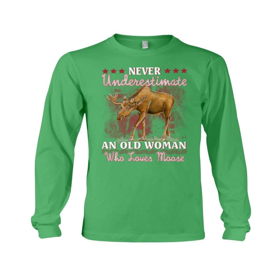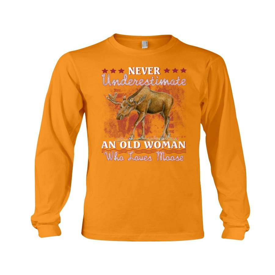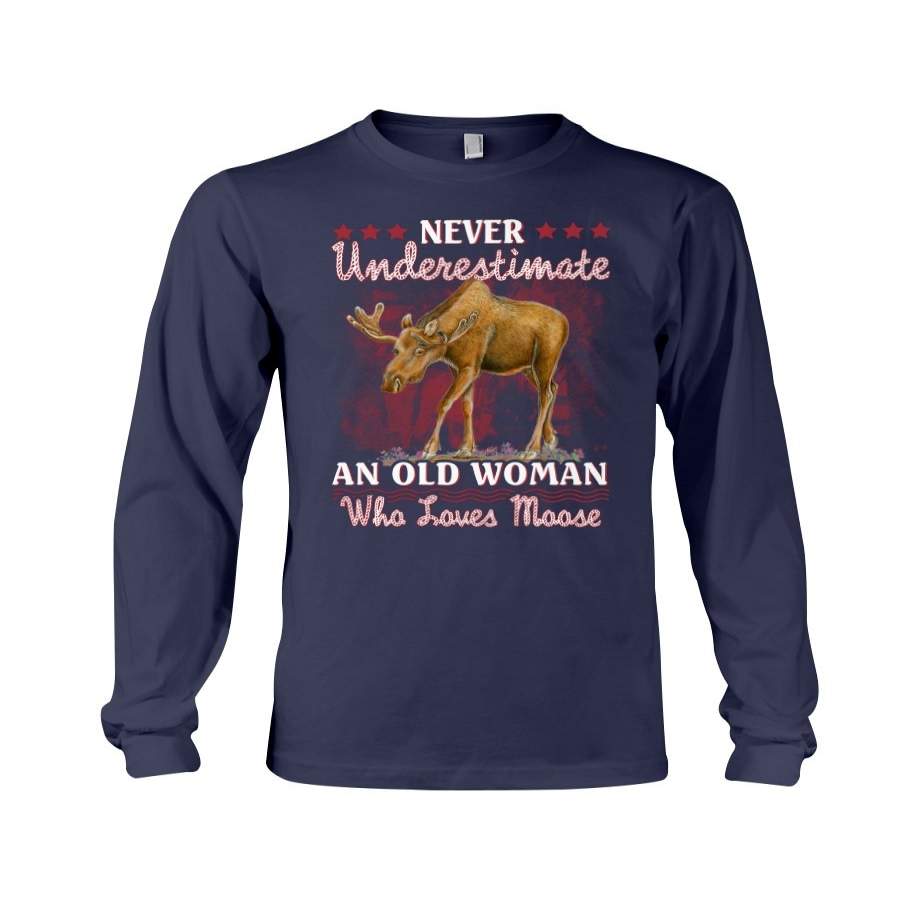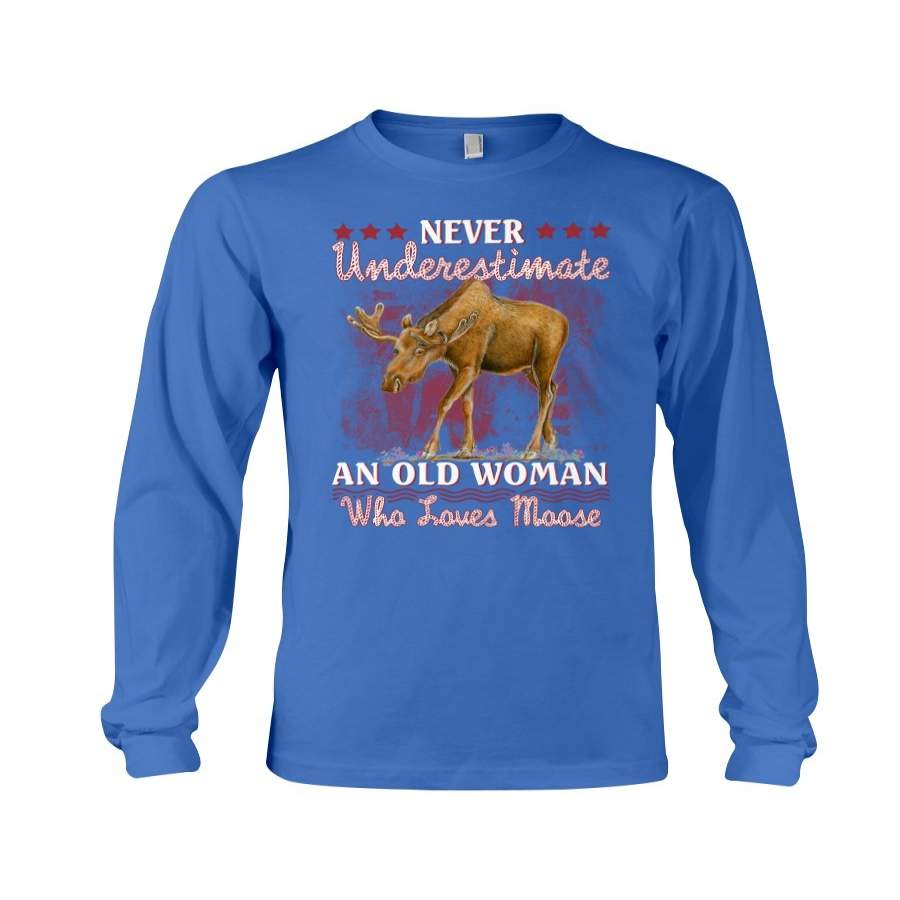 Never Underestimate An Old Woman Who Loves Moose Giving Moose Lovers Unisex Long Sleeve
