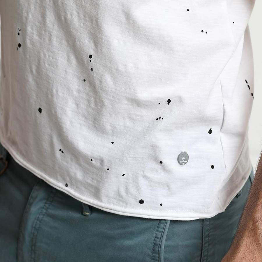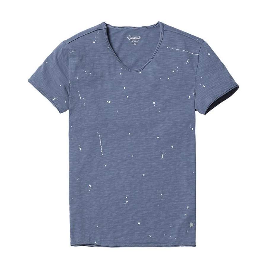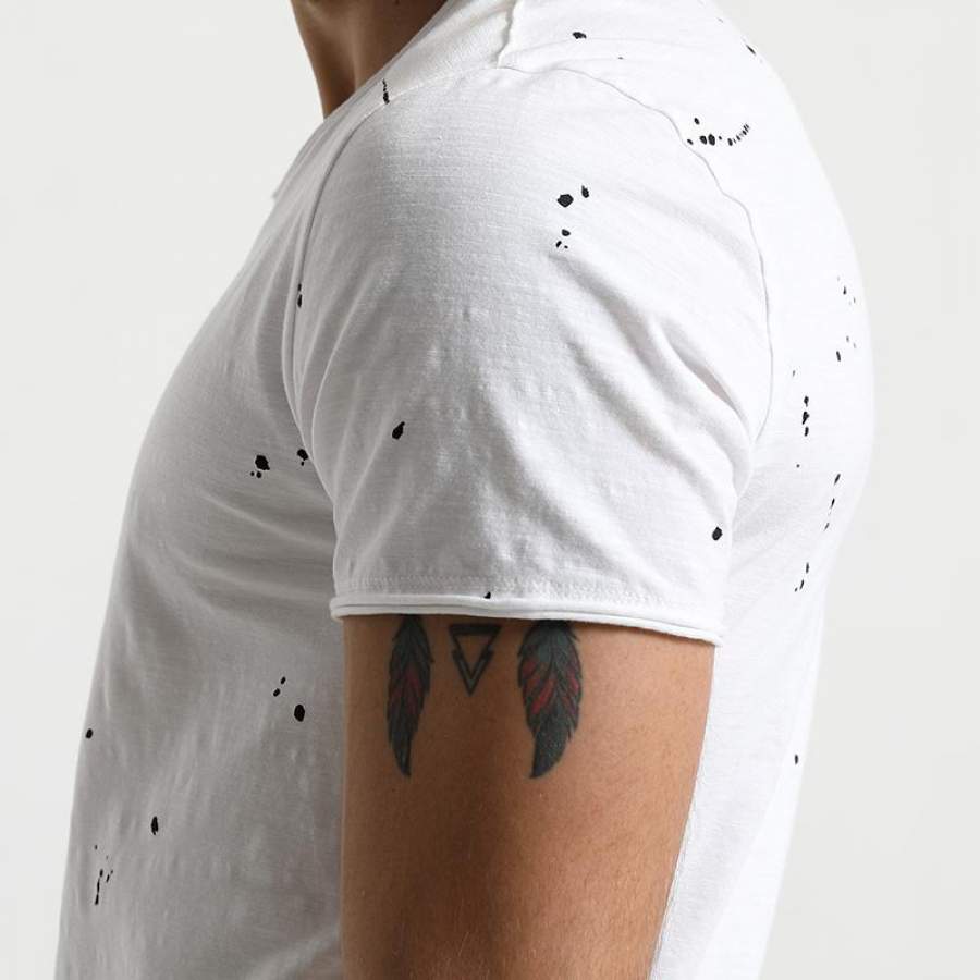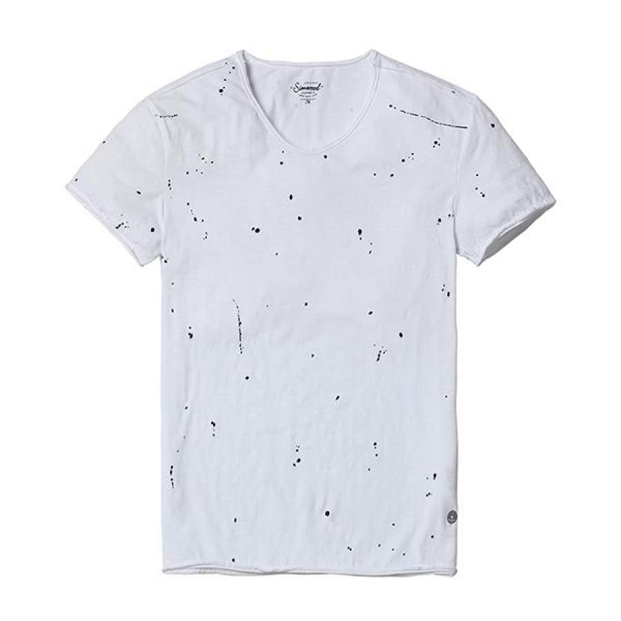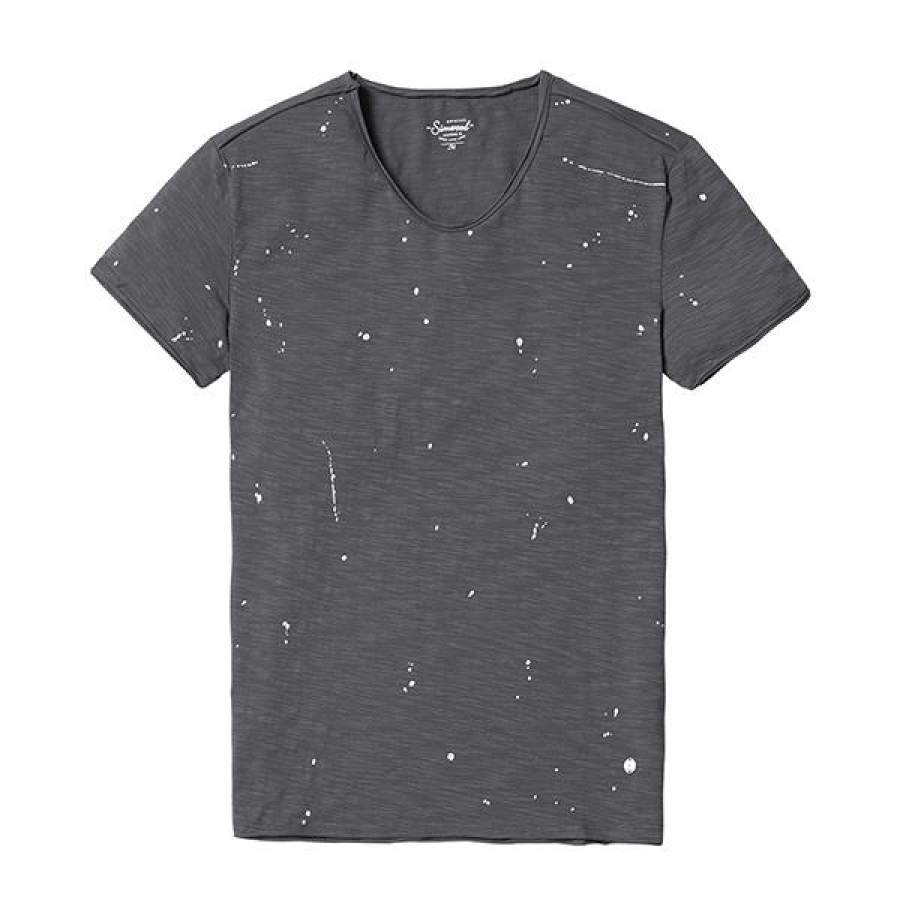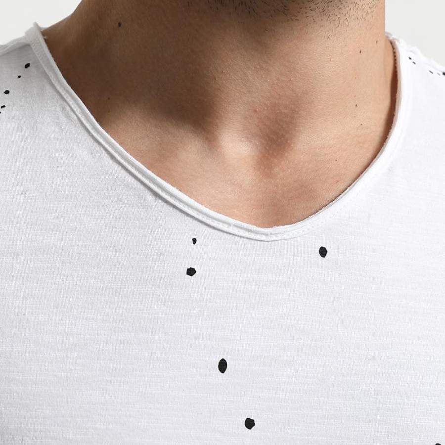 New Summer T-Shirts Men Vintage Painting Slim Fit Curl Hem Fashion V-Neck