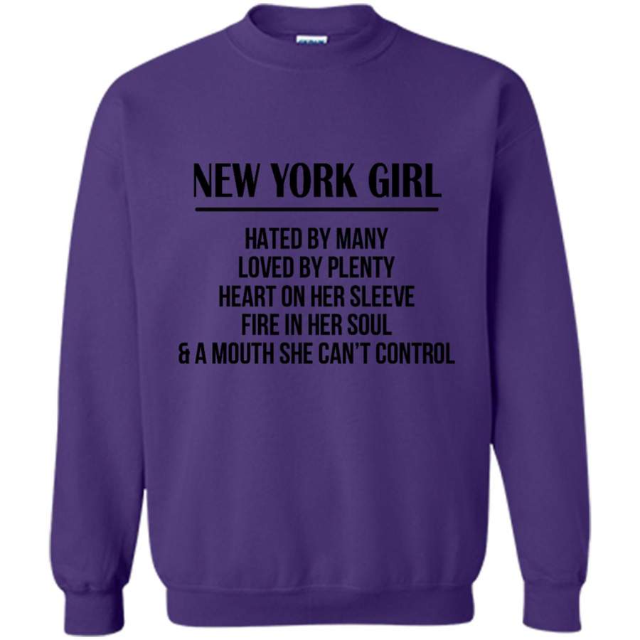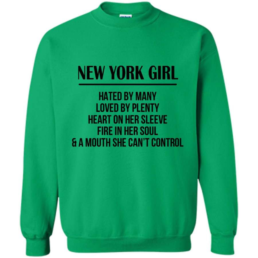New York Girl Hated By Many Loved By Plenty Heart On Her Sleeve Fire In Her Soul A Mouth She Can’t Control – Gildan Crewneck Sweatshirt