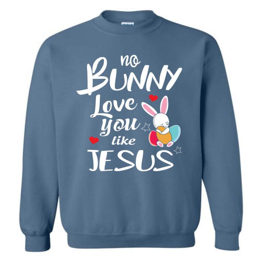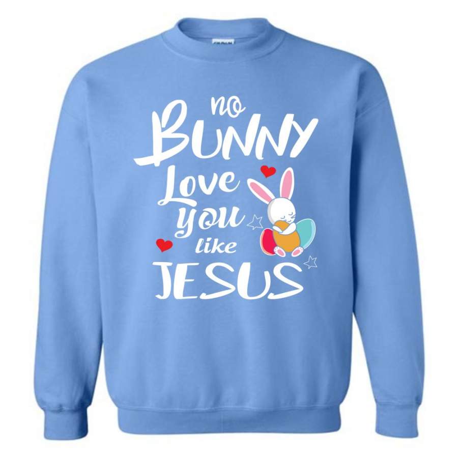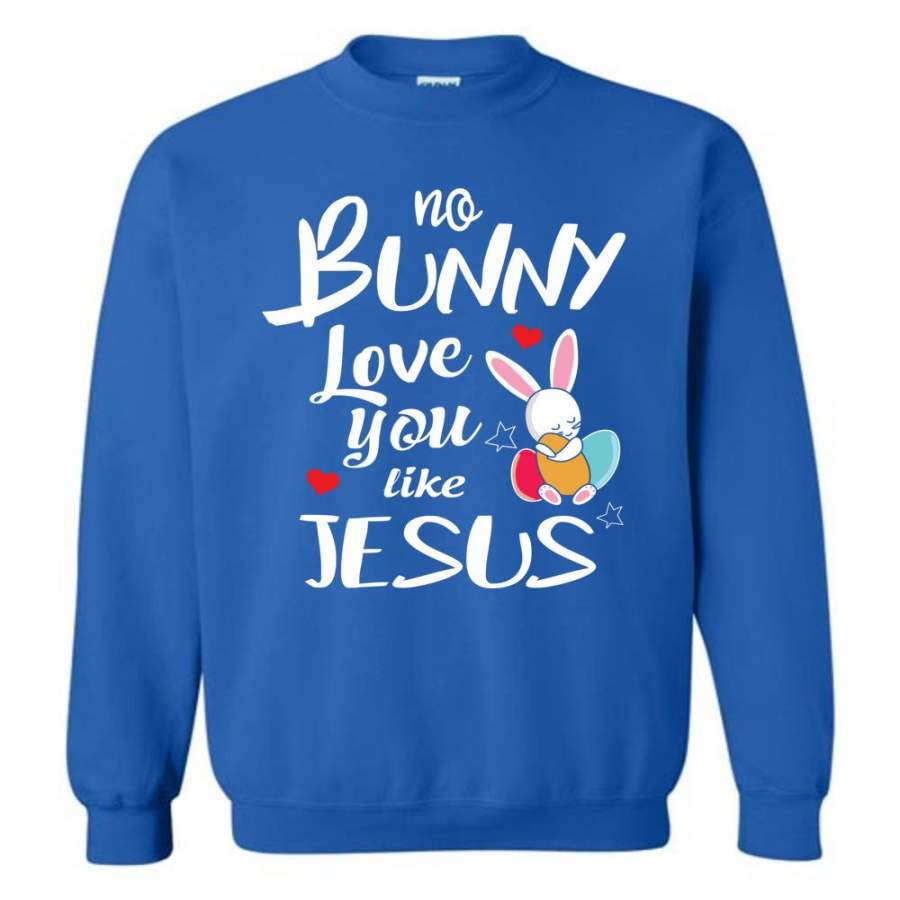 Our print-on-demand products are made with the highest quality materials, ensuring that your personalized No Bunny Love You Like Jesus Sweatshirt design looks great and feels comfortable. You can wear your new custom product with pride or give it as a unique and memorable gift that will be cherished for years to come.