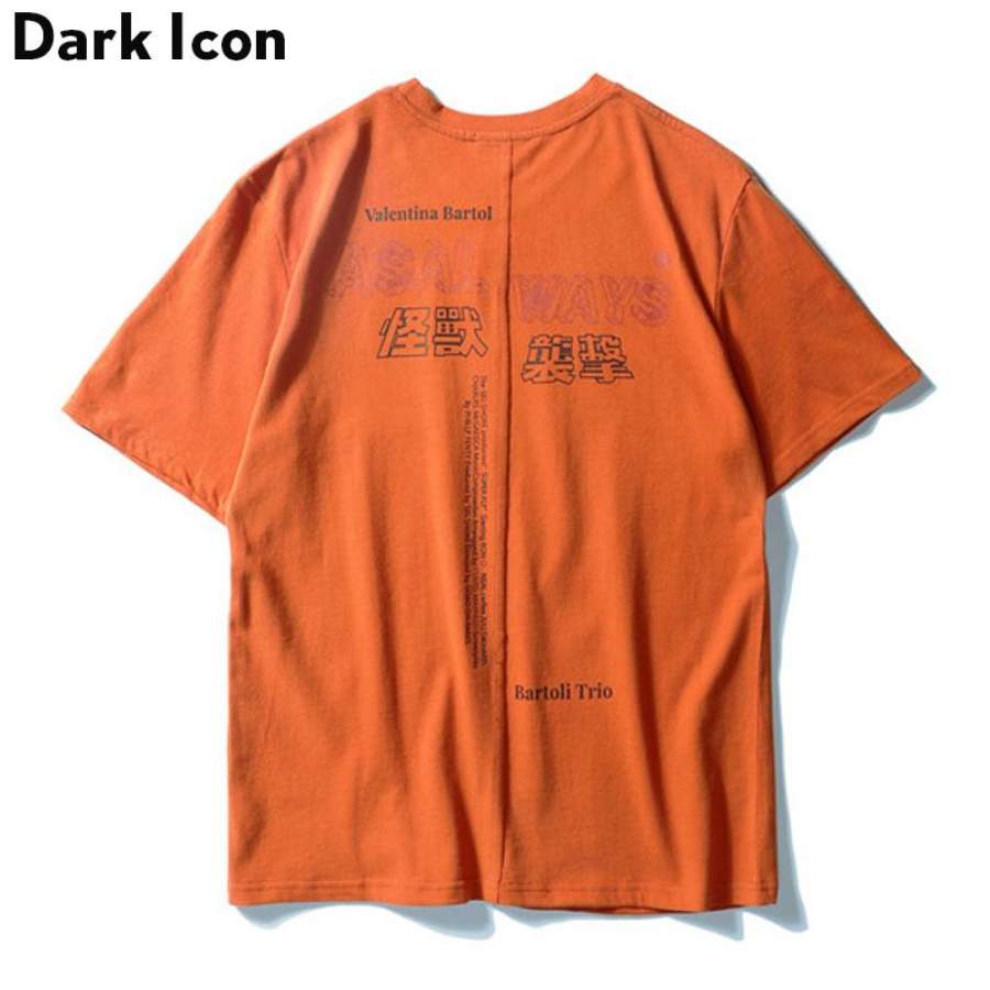 Novelty Printed O-neck Men’s T-shirt Short Sleeve Summer Casual T Shirts Men Tee Shirts Orange White