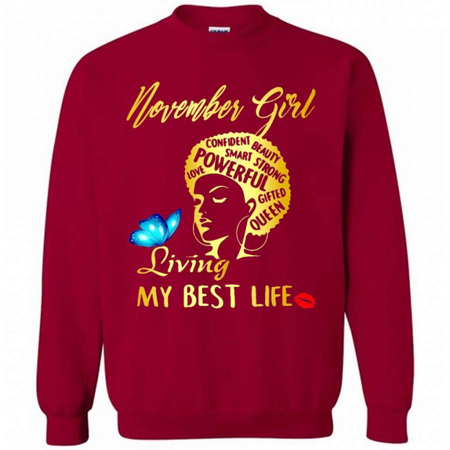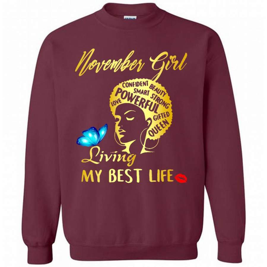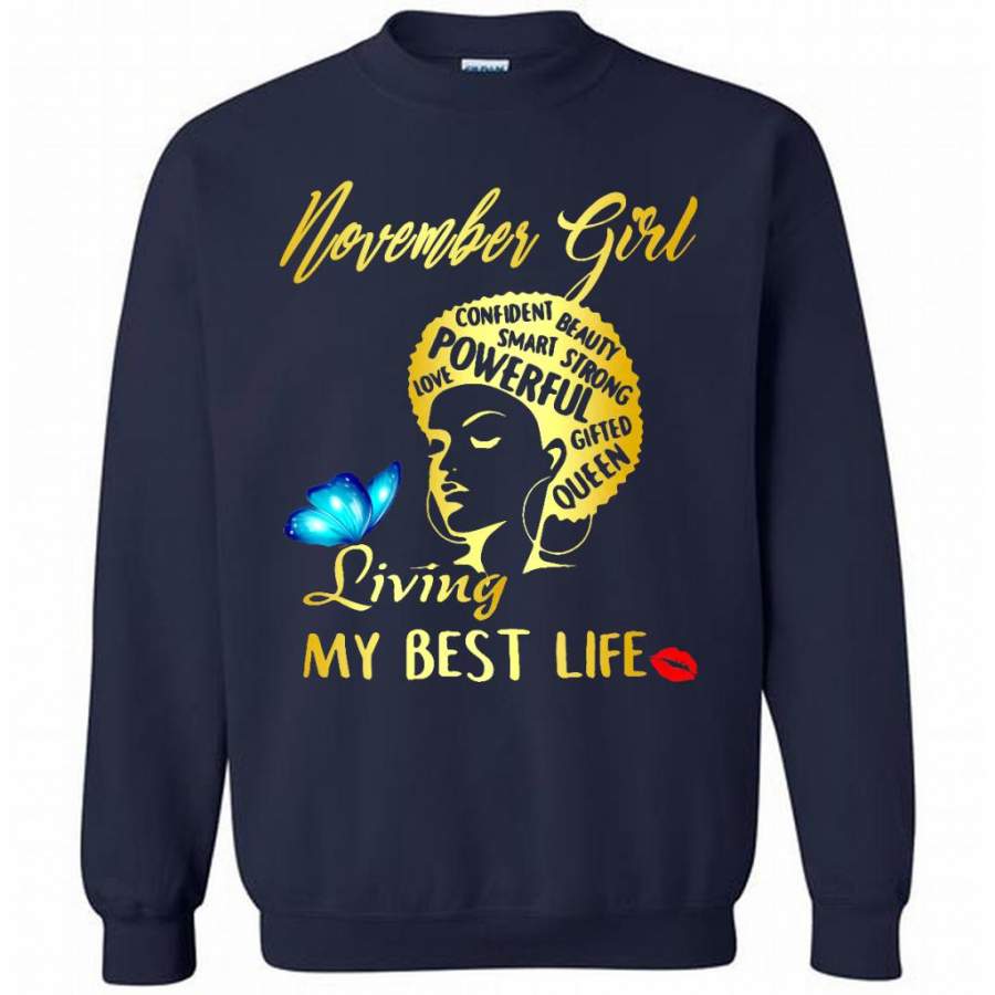 November Girl Living My Best Life Confident Beauty Smart Strong Powerful Love Gifted Queen – Gildan Crewneck Sweatshirt