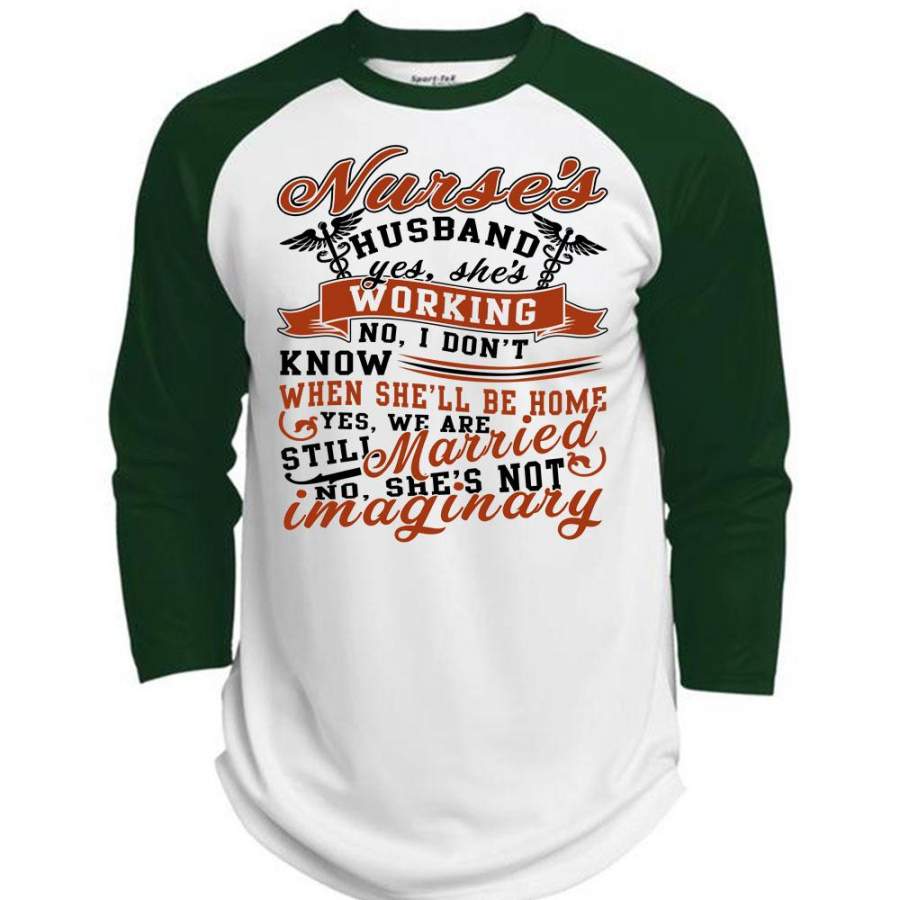 Nurse’s Husband He’s Working T Shirt, I Love Nursing T Shirt, Awesome T-Shirts (Polyester Game Baseball Jersey)