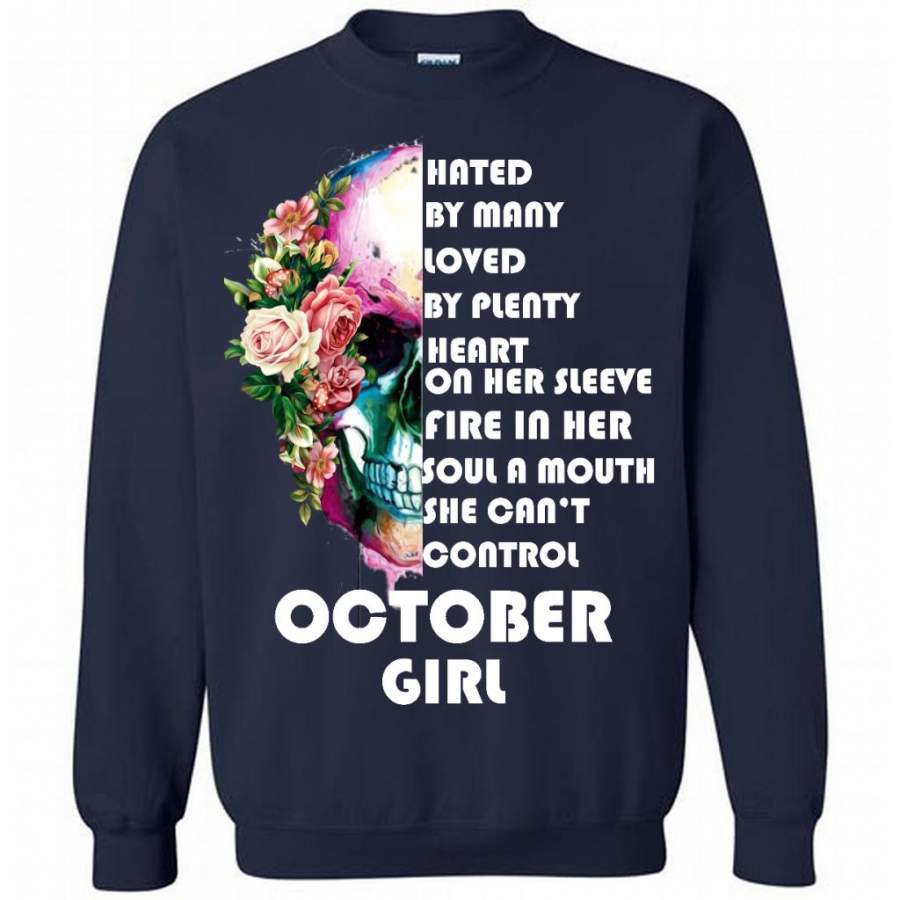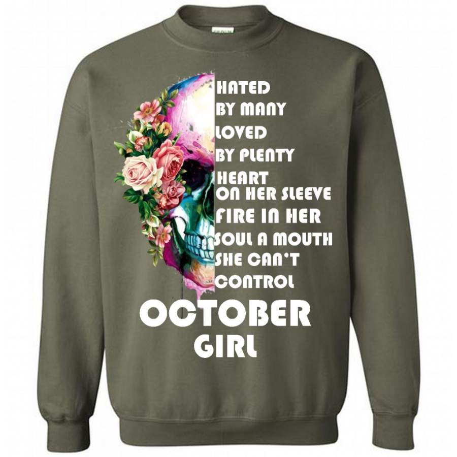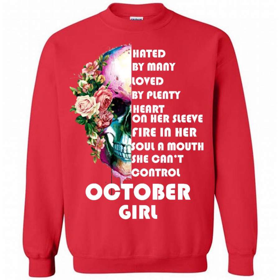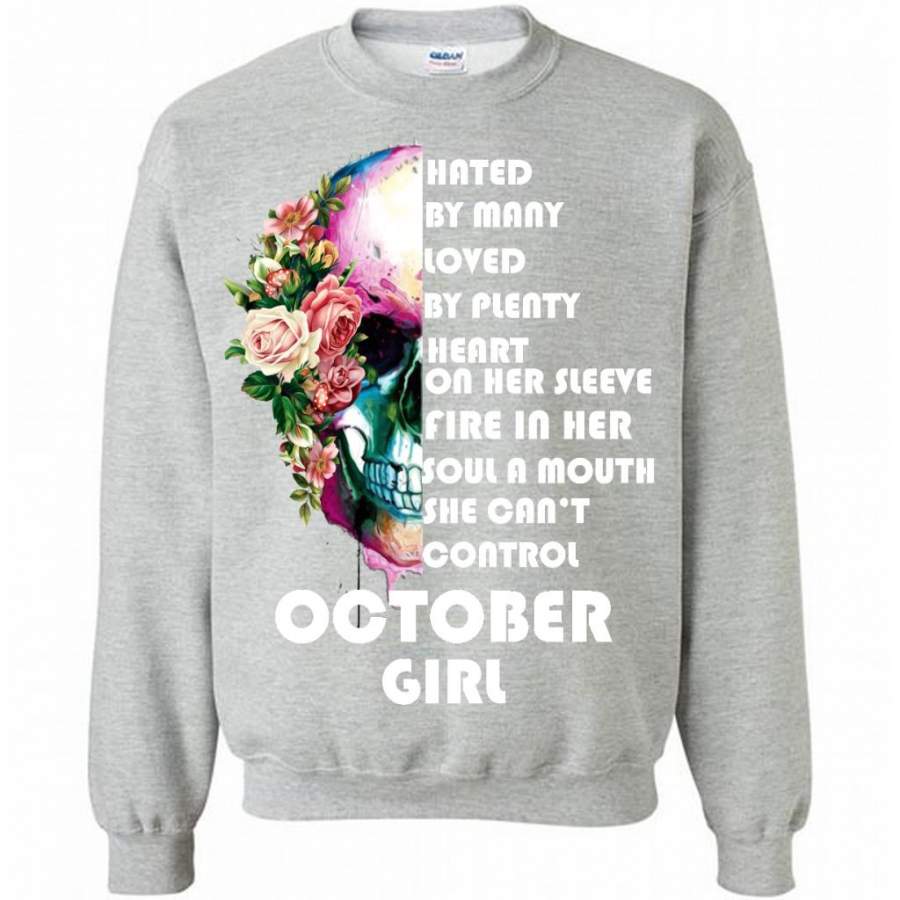 October Girl, Hated By Many Loved By Plenty Heart On Her Sleeve Fire In Her Soul A Mouth She Can’t Control – Gildan Crewneck Sweatshirt
