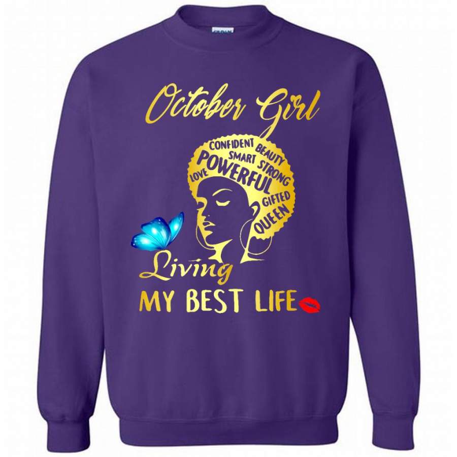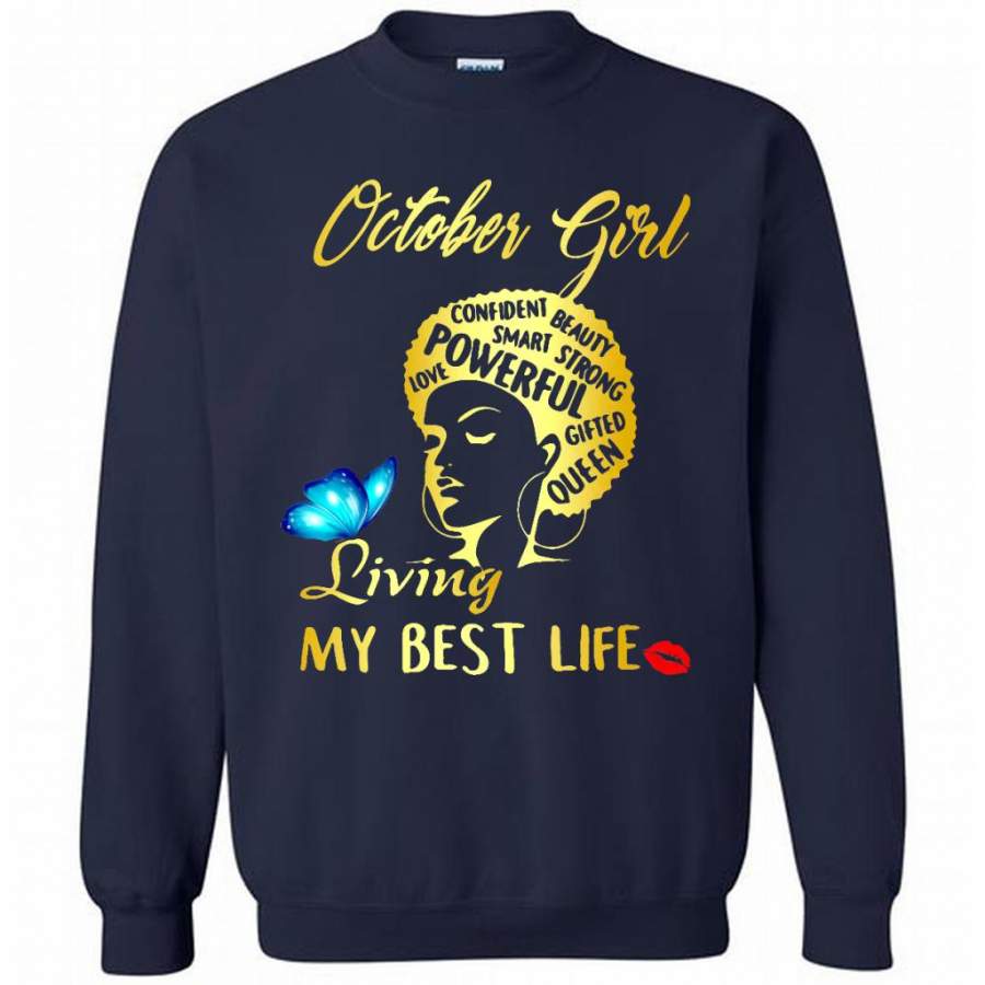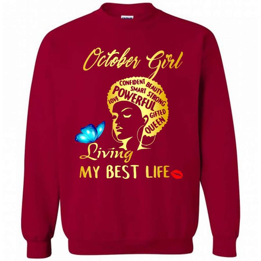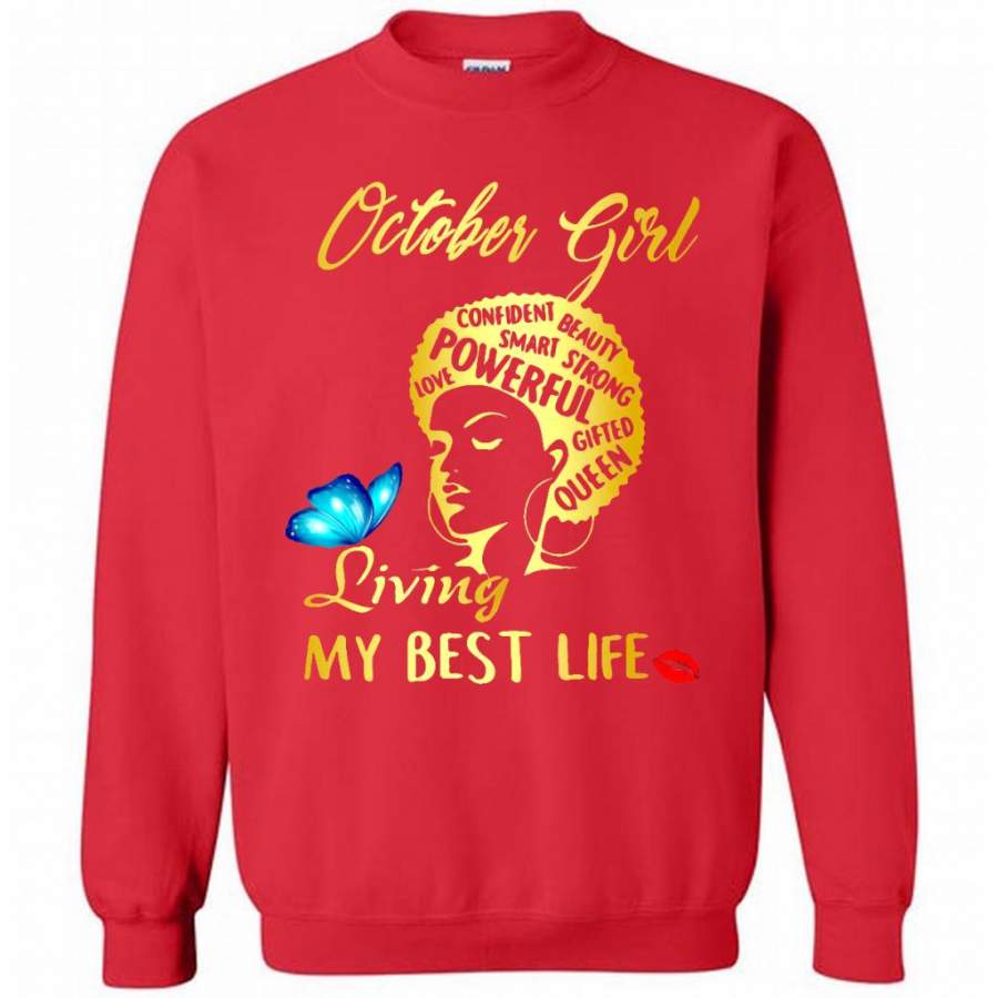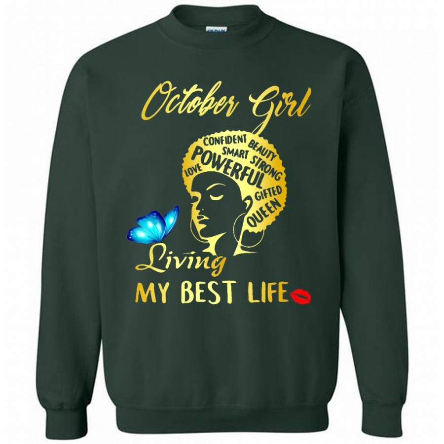 October Girl Living My Best Life Confident Beauty Smart Strong Powerful Love Gifted Queen – Gildan Crewneck Sweatshirt