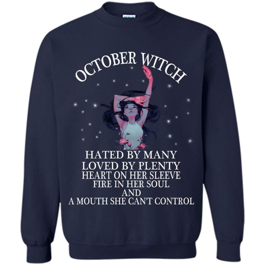 So whether you're looking to show off your own name or create a personalized gift for someone special, LateAndLow Store has got you covered. Start designing your own custom October Witch Hated By Many Loved By Plenty – Gildan Crewneck Sweatshirt print-on-demand product today, and let us bring your vision to life!