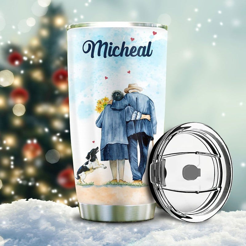 Old Couple Border Collie Personalized Stainless Steel Tumbler