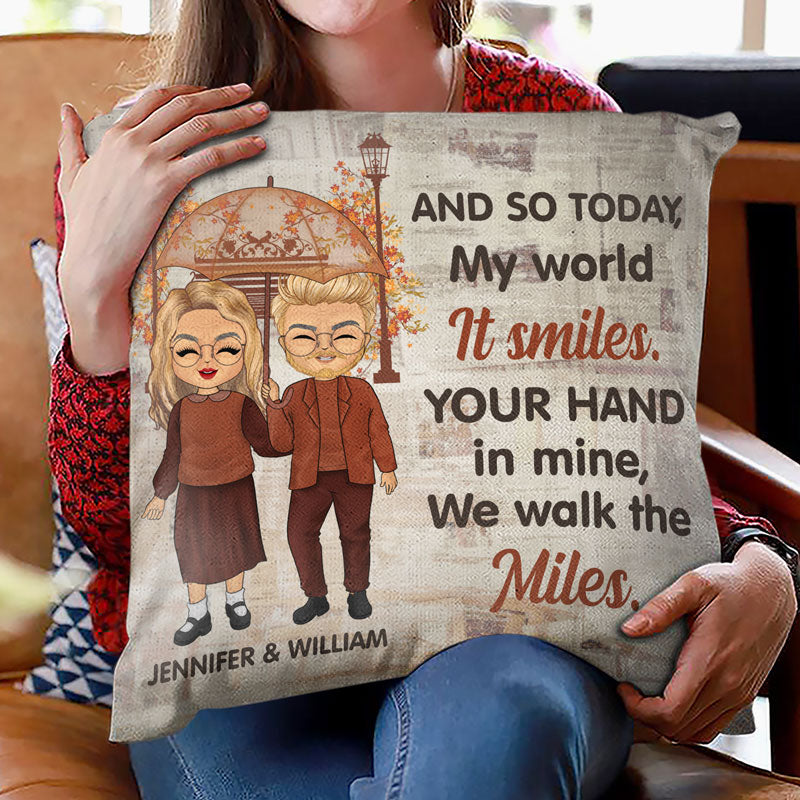 Old Couple Couple Gift Your Hand In Mine We Walk The Miles – Personalized Custom Pillow