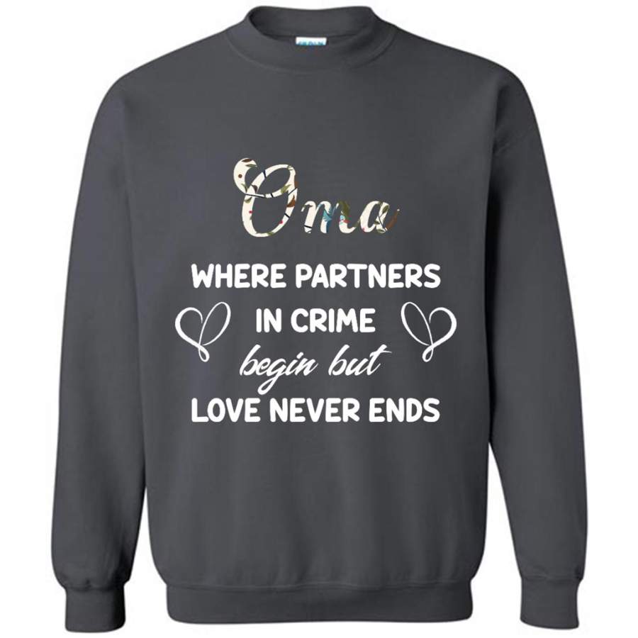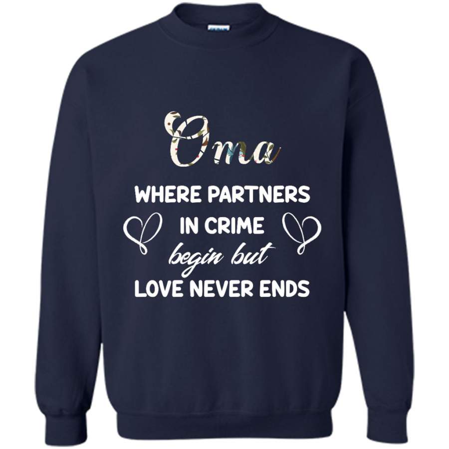 Oma Where Partners In Crime Begin But Love Never Ends – Gildan Crewneck Sweatshirt