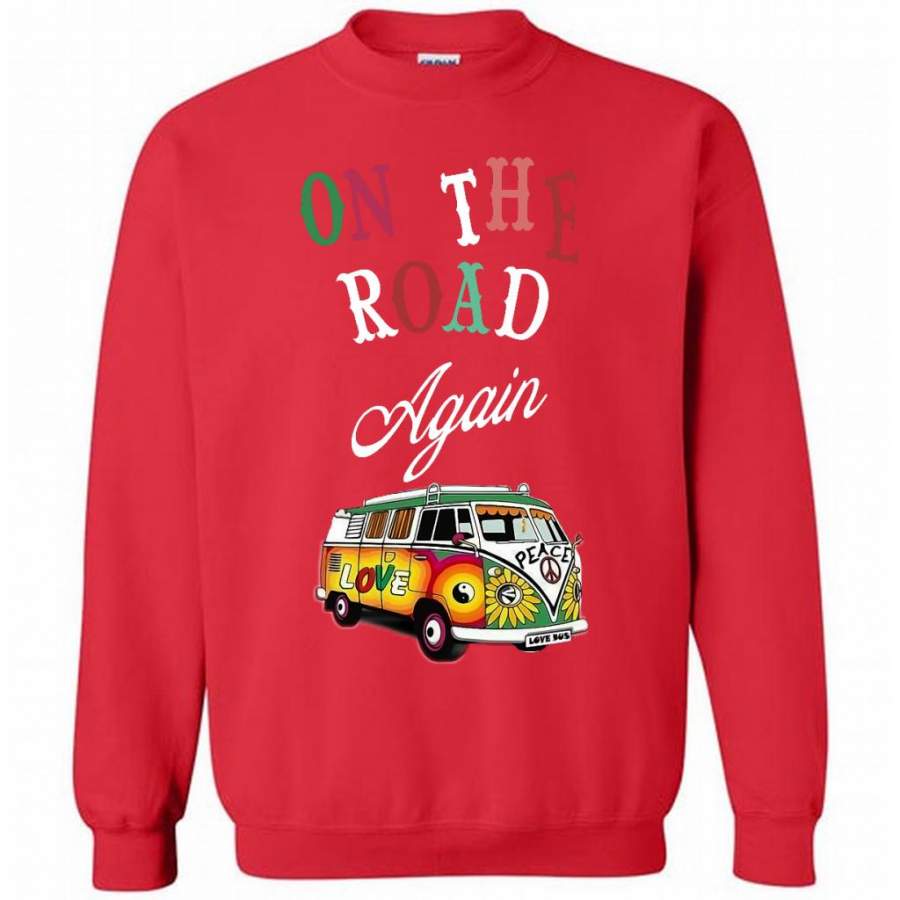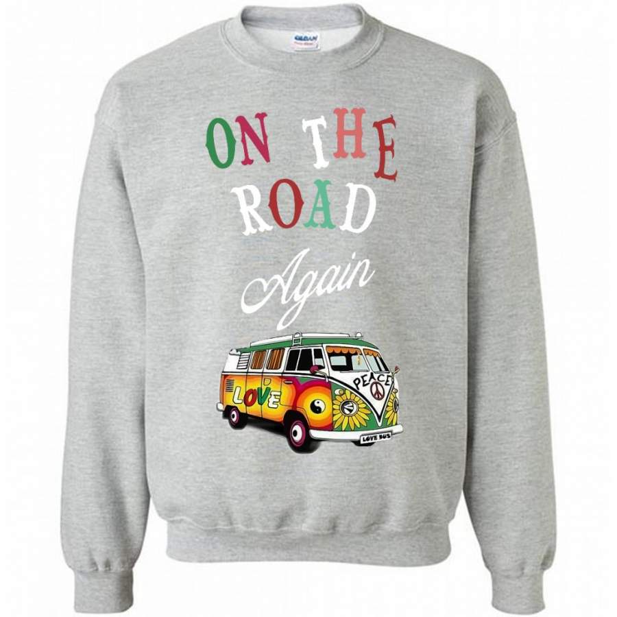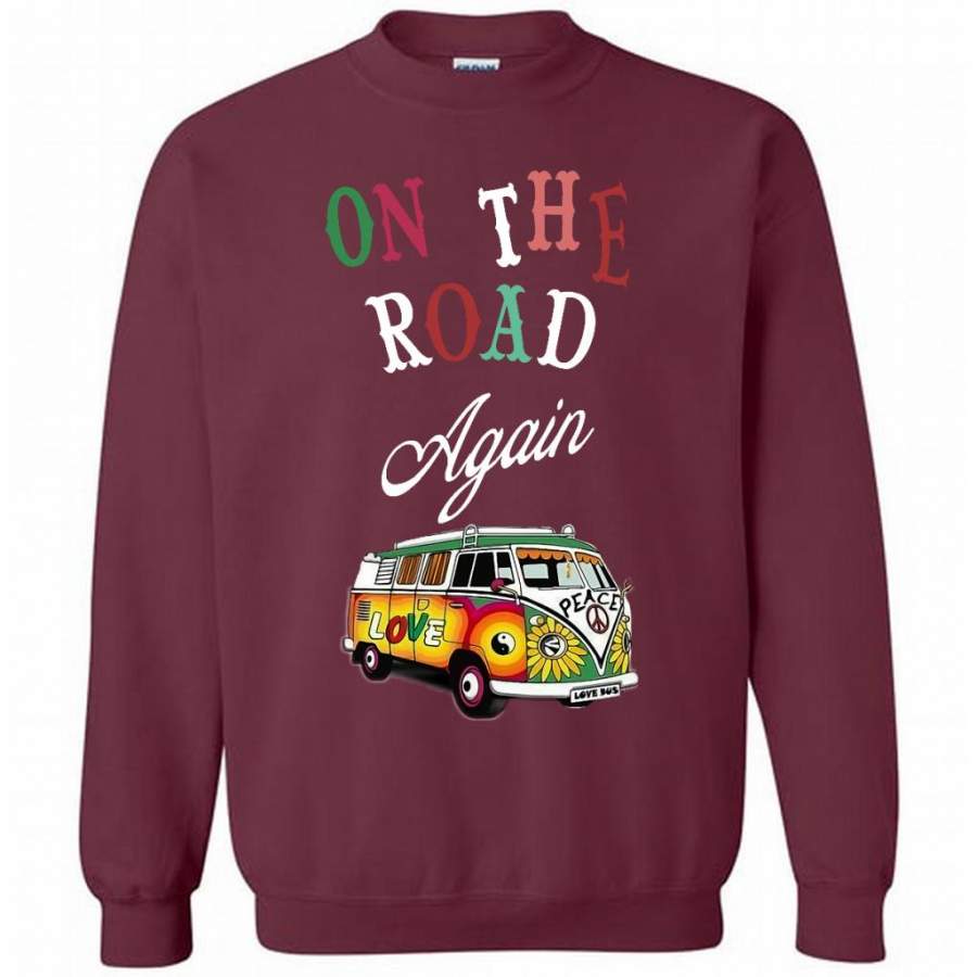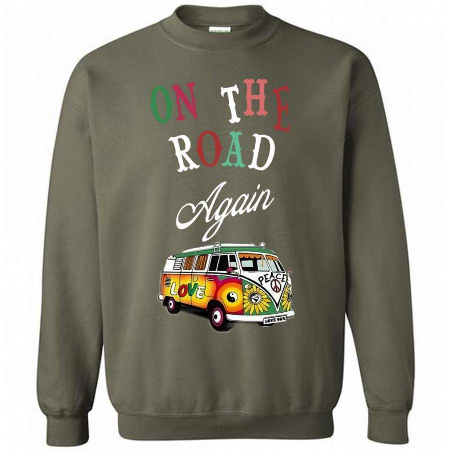On The Road Again, Hippie Love Peace Sign Love Bus – Gildan Crewneck Sweatshirt