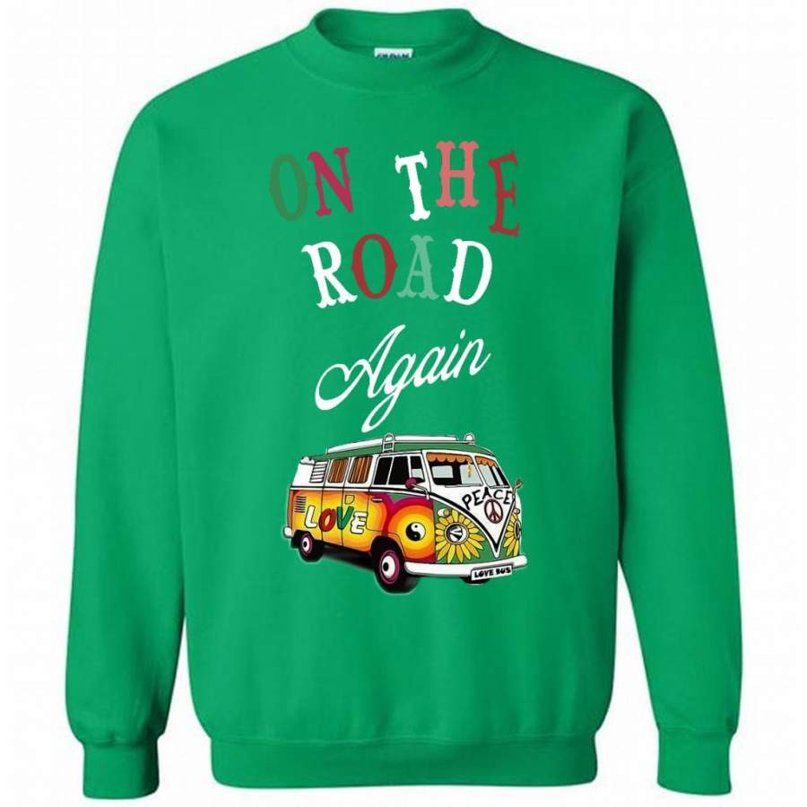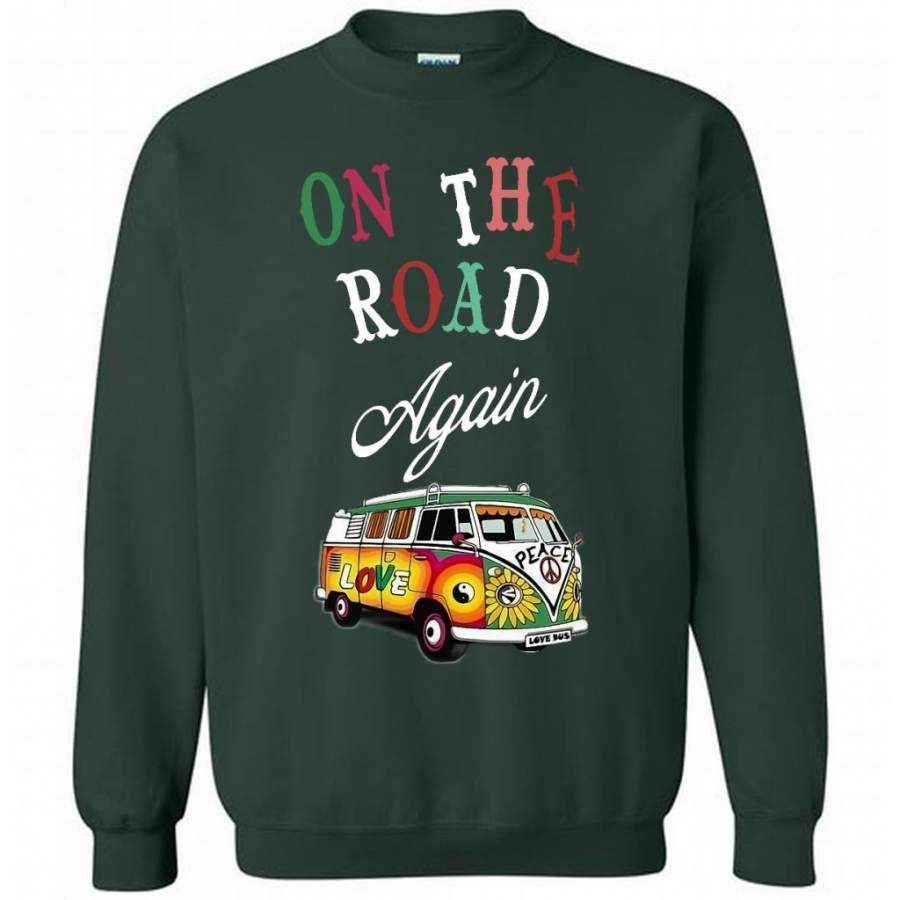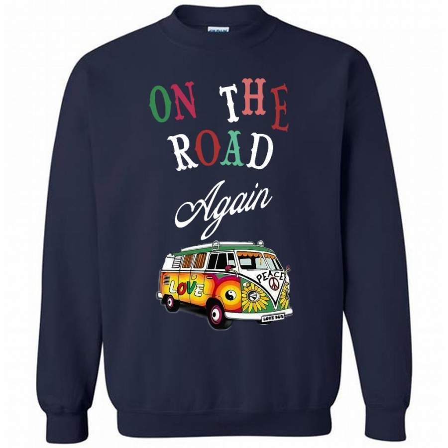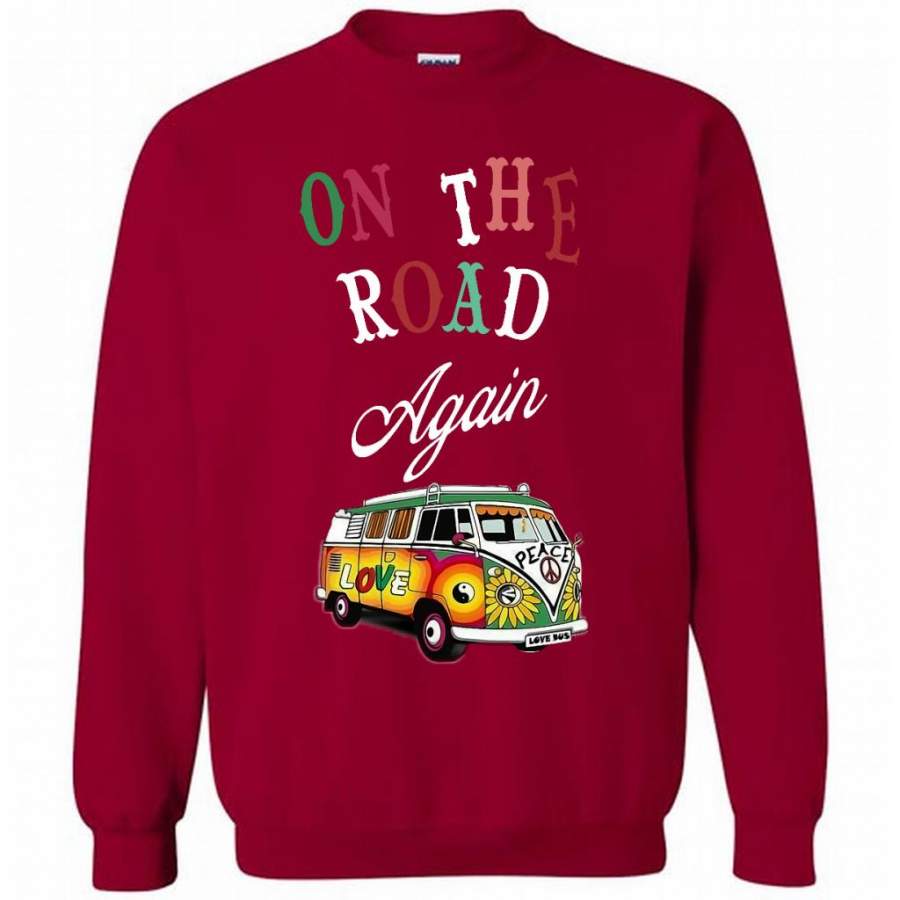 On The Road Again, Hippie Love Peace Sign Love Bus – Gildan Crewneck Sweatshirt