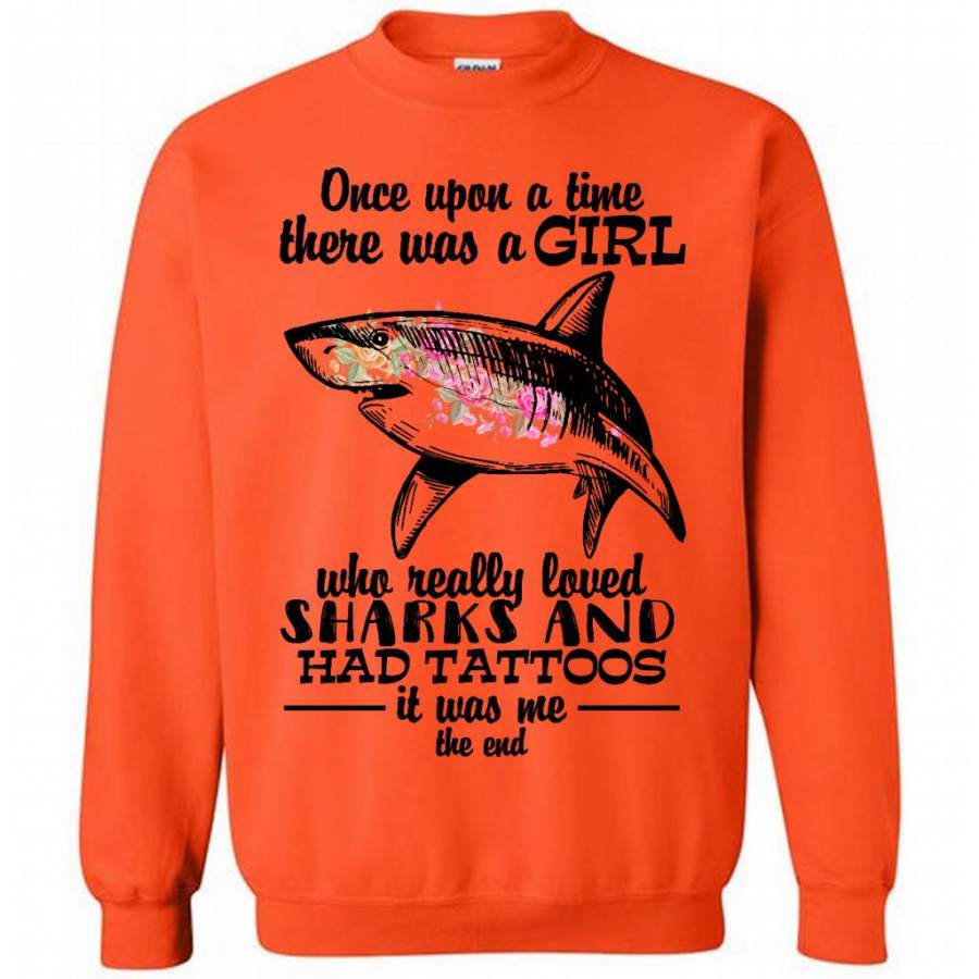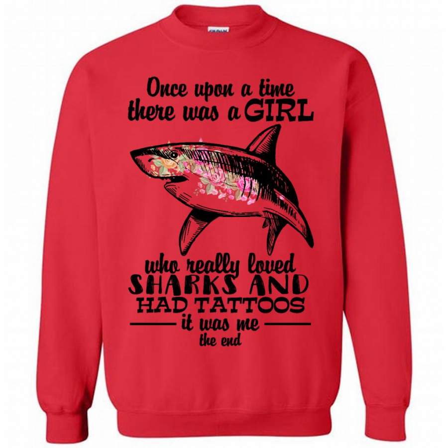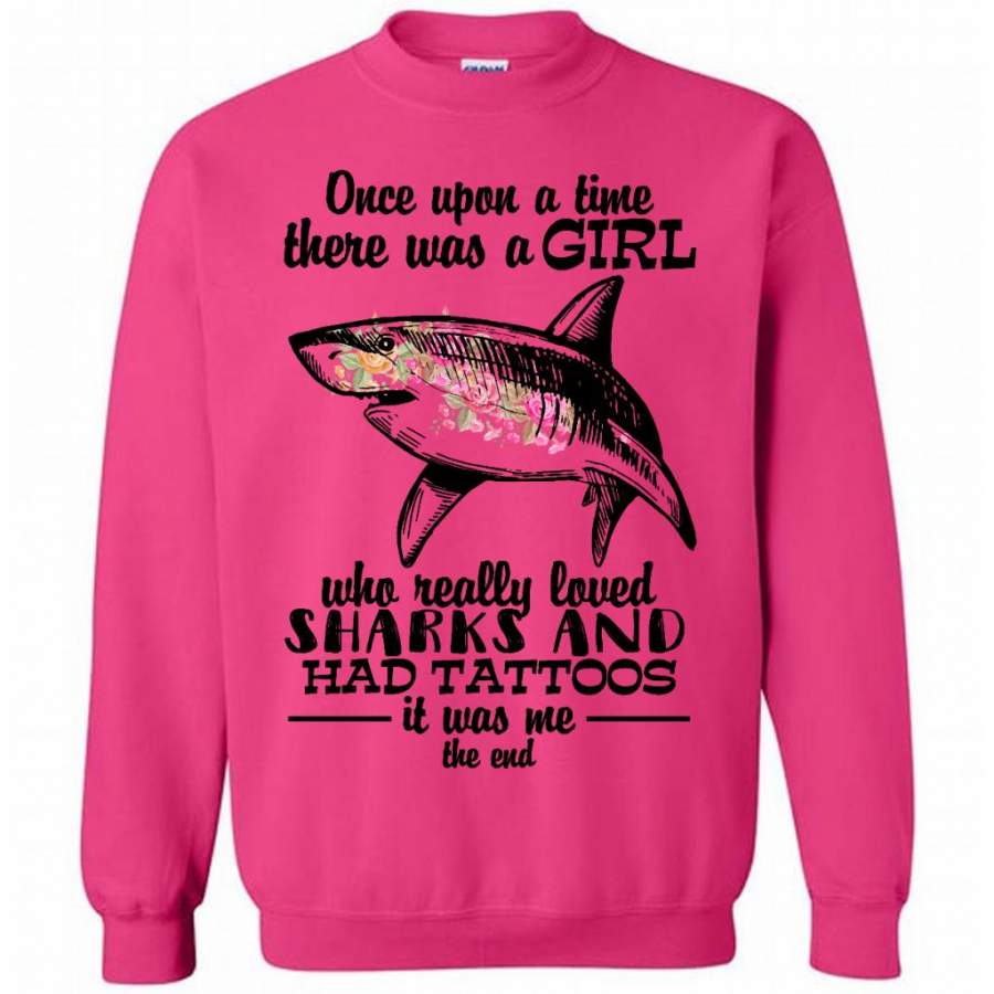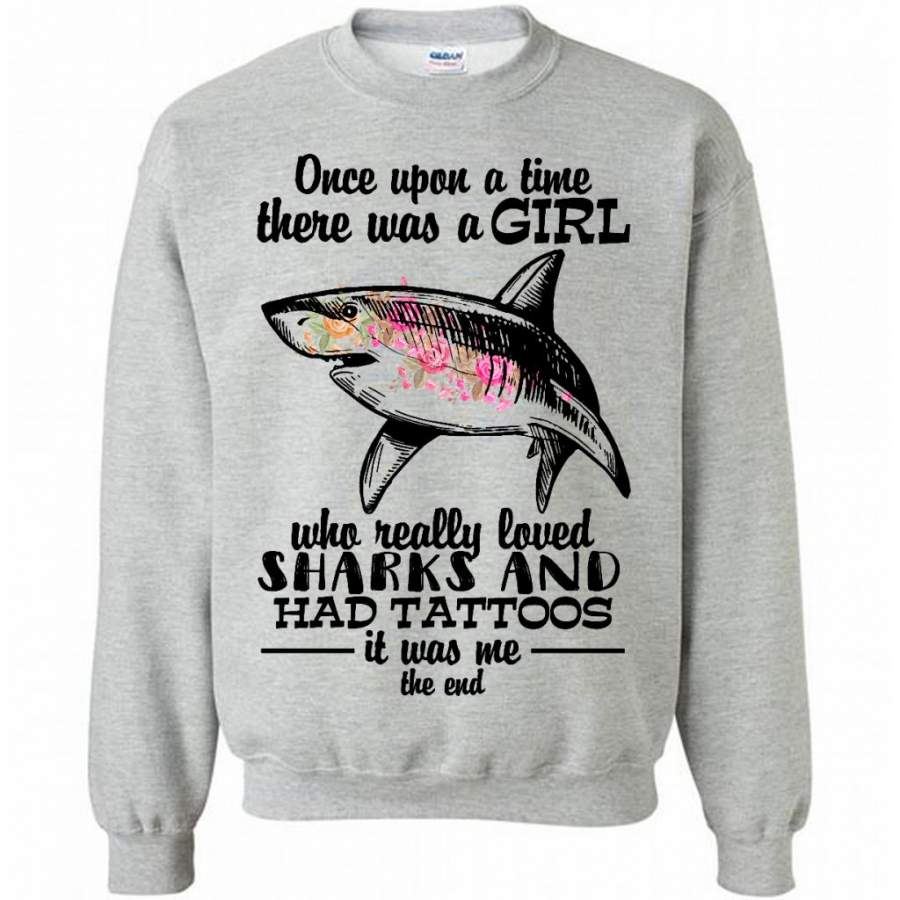 Once Upon A Time There Was A Girl Who Really Loved Sharks And Had Tattoos It Was Me The End – Gildan Crewneck Sweatshirt