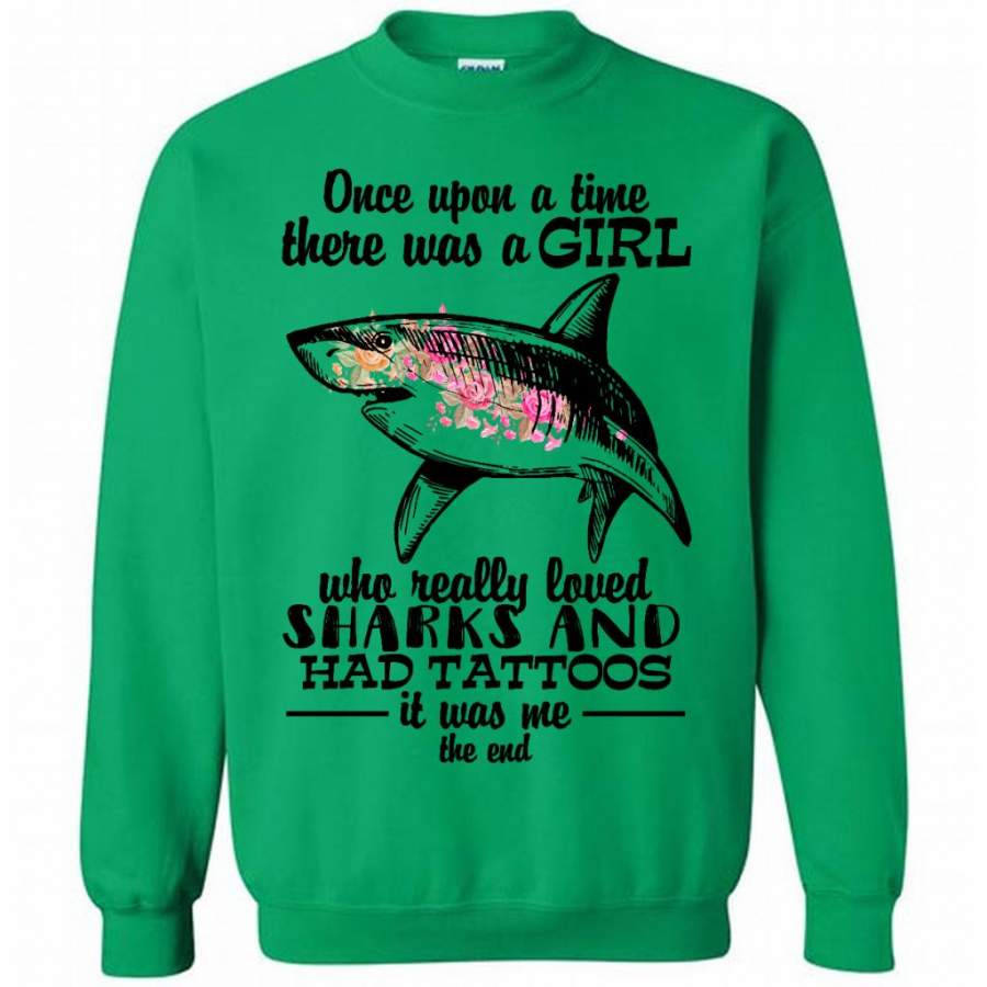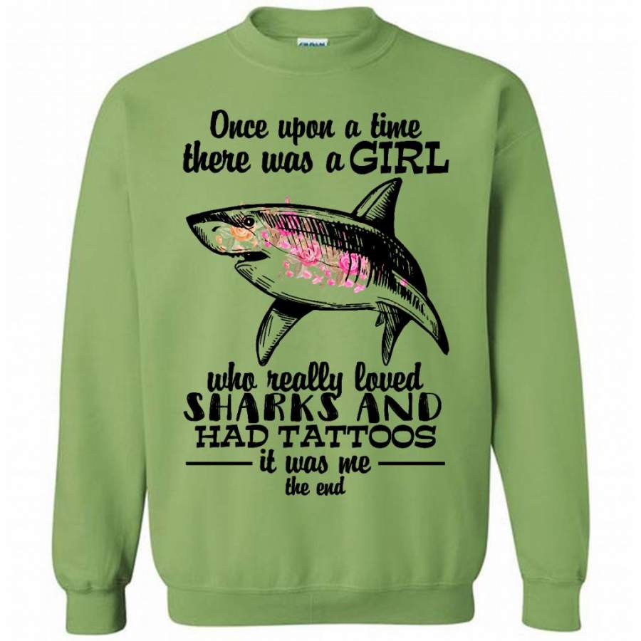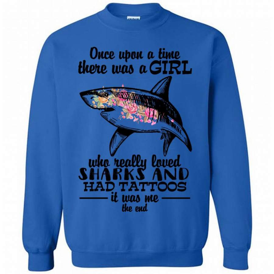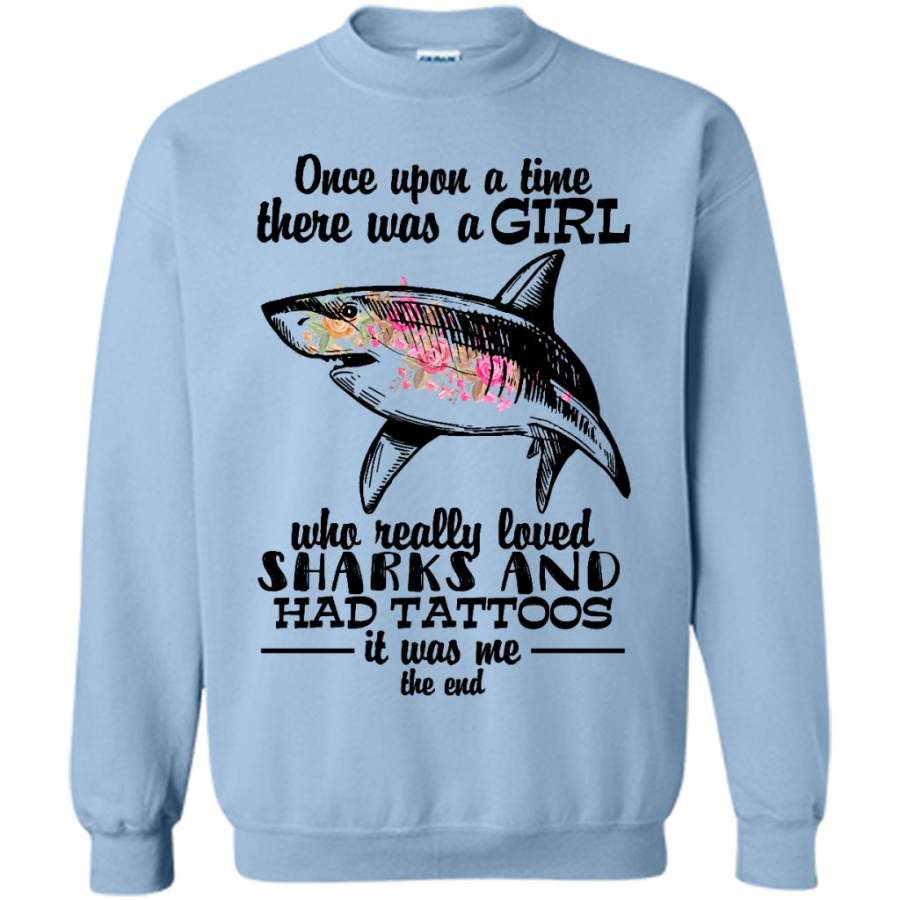 Once Upon A Time There Was A Girl Who Really Loved Sharks And Had Tattoos It Was Me The End – Gildan Crewneck Sweatshirt