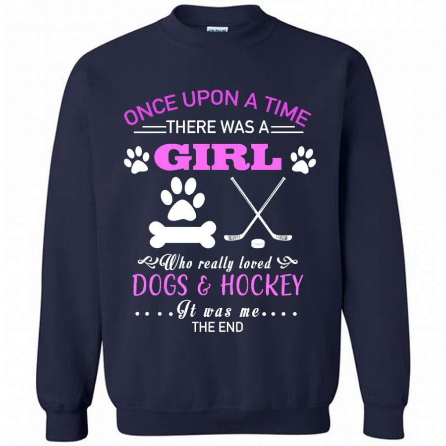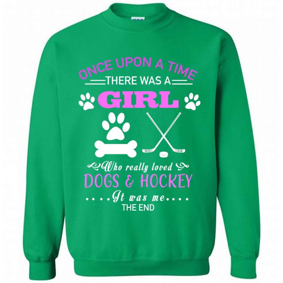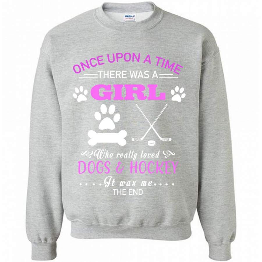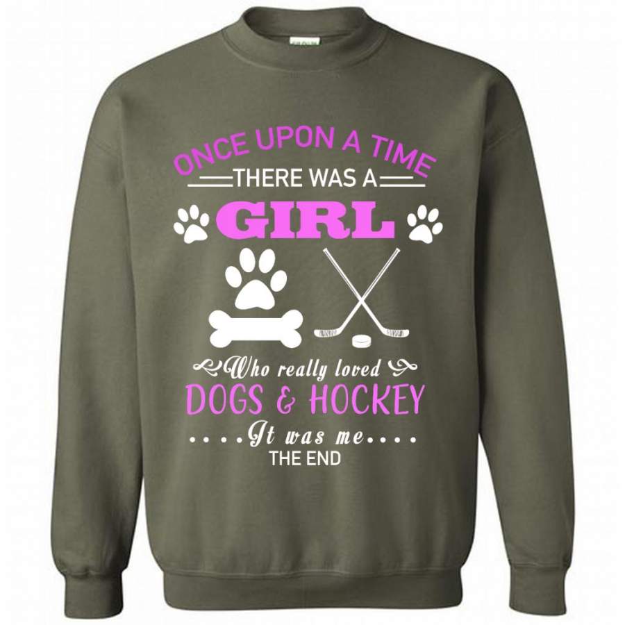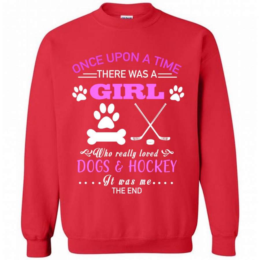 Once Upon A Time There Was A Girl Who Really Loves Dogs And Hockey It Was Me The End – Gildan Crewneck Sweatshirt