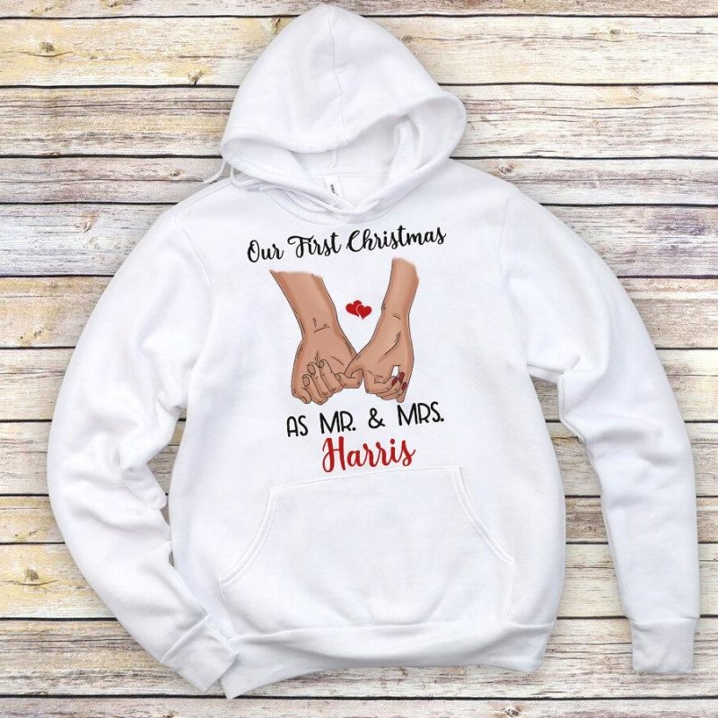 Our First Christmas Holding Hand Personalized Christmas Shirt For Couple