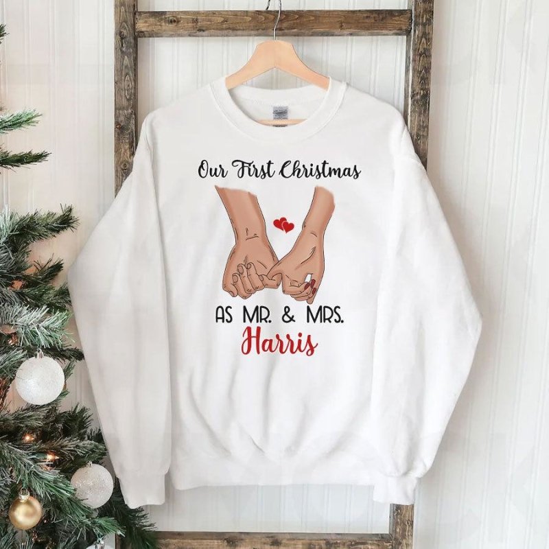 Our print-on-demand products are made with the highest quality materials, ensuring that your personalized Our First Christmas Holding Hand Personalized Christmas Shirt For Couple design looks great and feels comfortable. You can wear your new custom product with pride or give it as a unique and memorable gift that will be cherished for years to come.