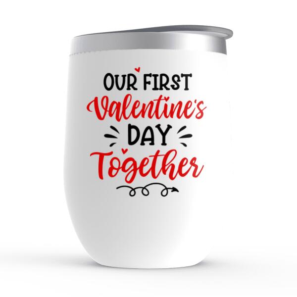 Our First Valentine’S Day – Personalized Wine Tumbler For Couples, Dog Lovers, Cat Lovers