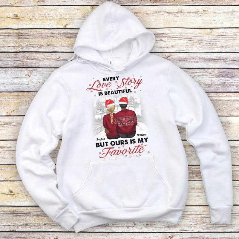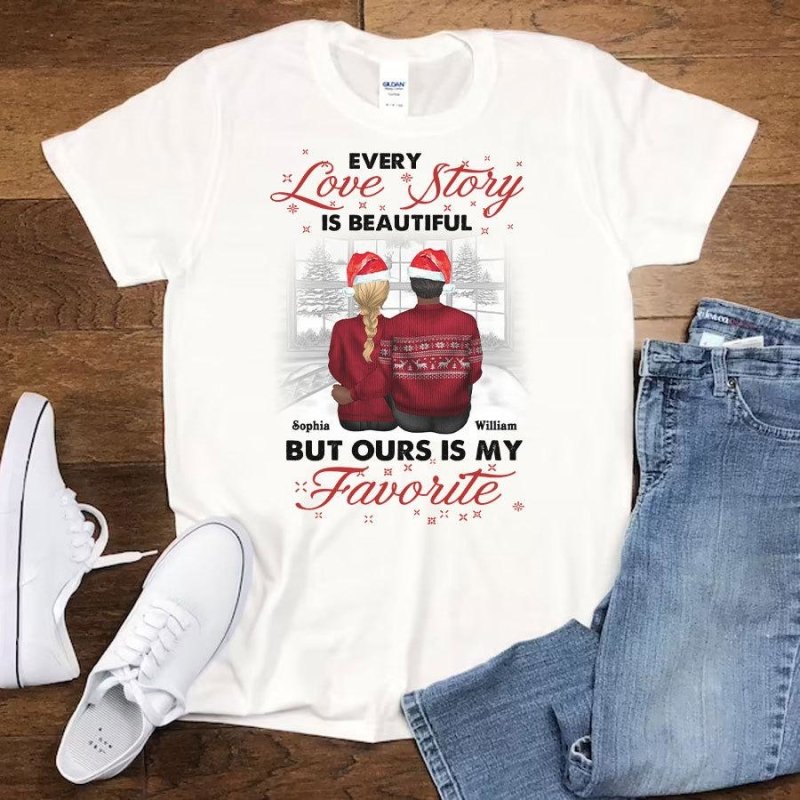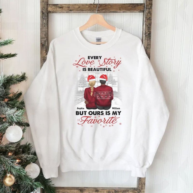 So whether you're looking to show off your own name or create a personalized gift for someone special, LateAndLow Store has got you covered. Start designing your own custom Our Love Story Is My Favourite Personalized Christmas Shirt For Couple print-on-demand product today, and let us bring your vision to life!