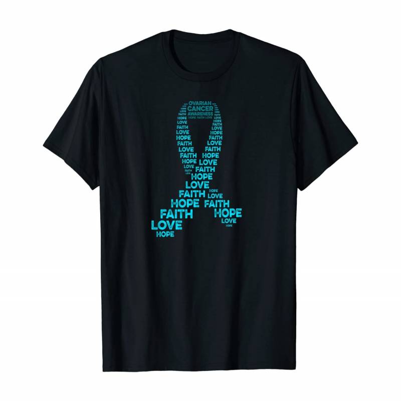 Ovarian Cancer Awareness Hope Faith Love Teal Ribbon Warrior Pullover Hoodie, T-Shirt, Sweatshirt