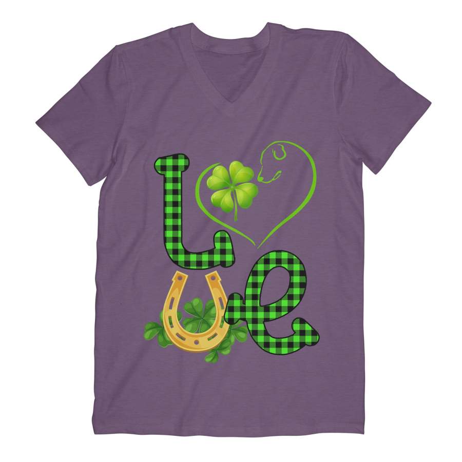 So whether you're looking to show off your own name or create a personalized gift for someone special, LateAndLow Store has got you covered. Start designing your own custom Patrick Day Love Dog V-neck print-on-demand product today, and let us bring your vision to life!