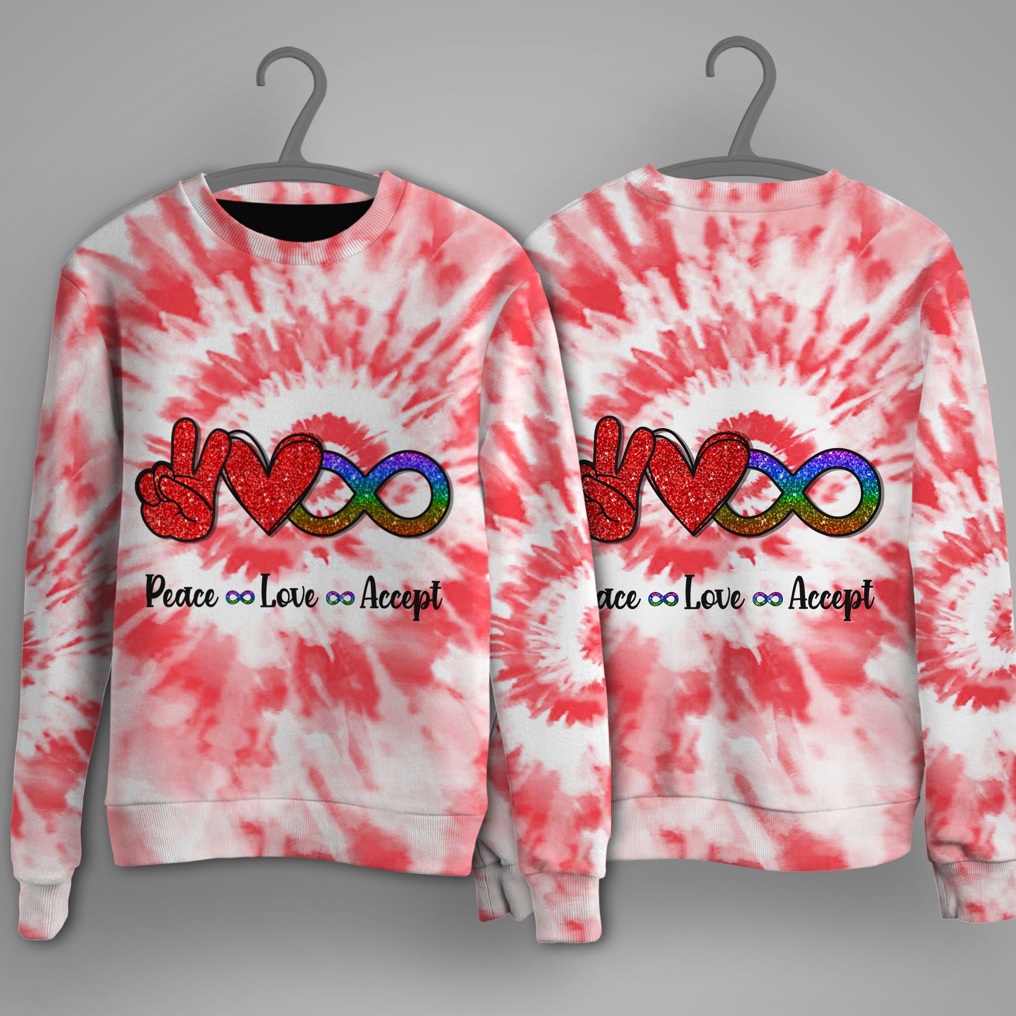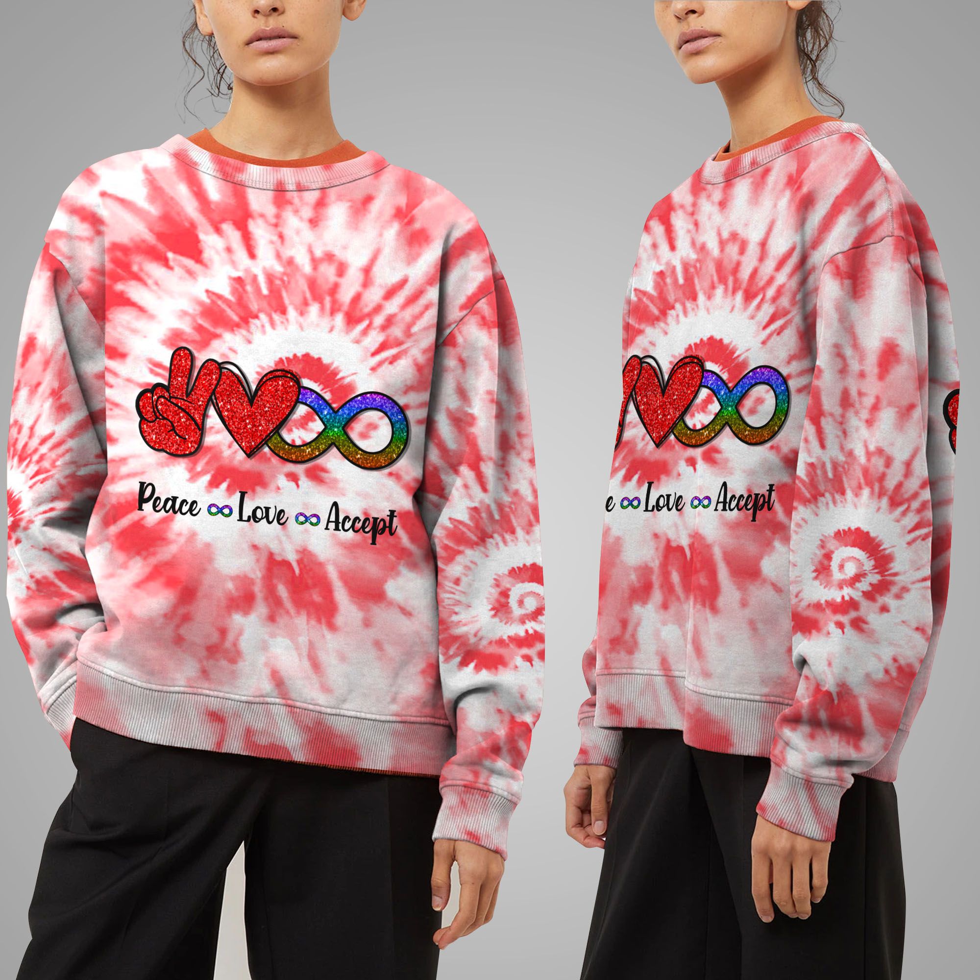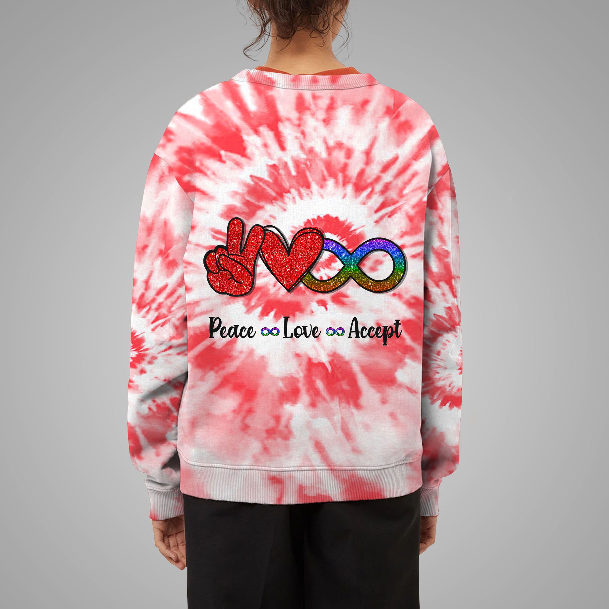 Peace Love Accept Tie Dye 3D Long Sleeve Tee Shirt For Autism Supporters