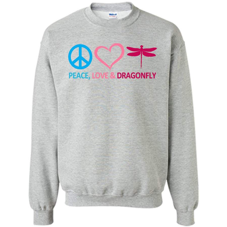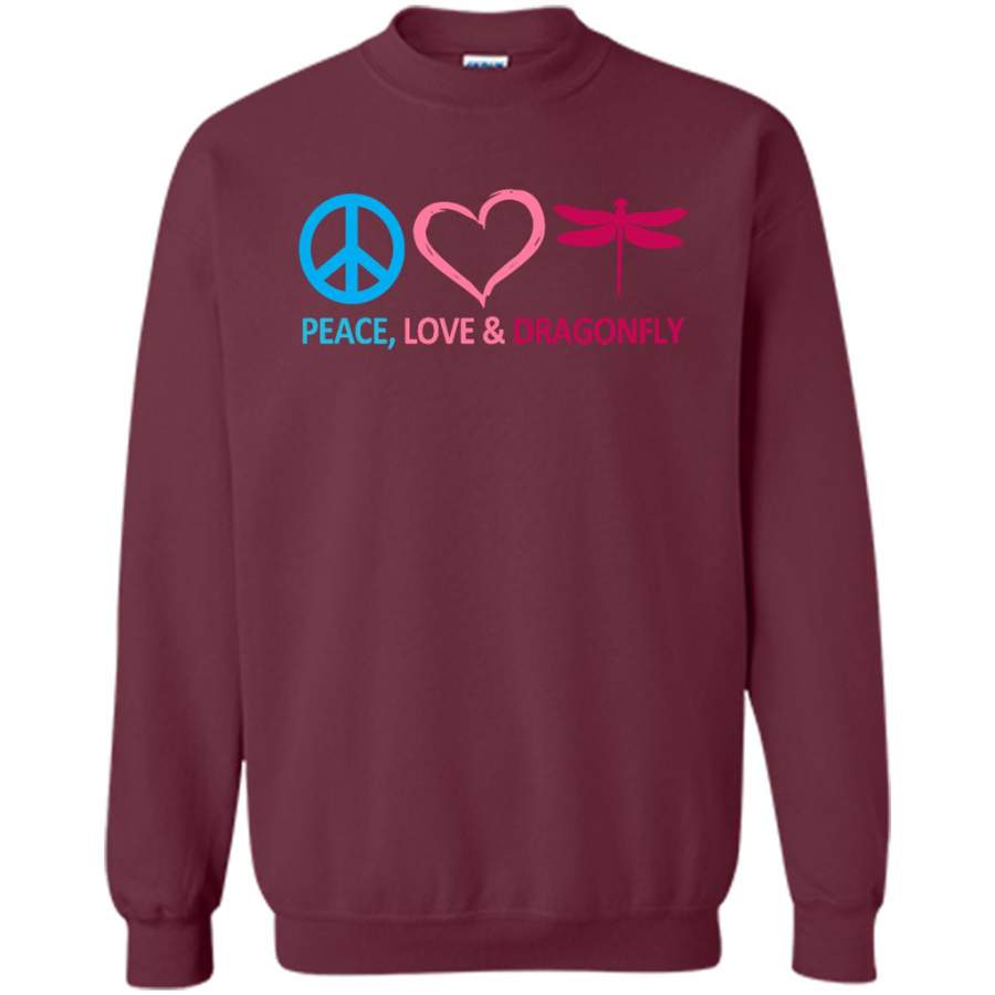 Peace Love and Dragonfly – Gildan Crewneck Sweatshirt