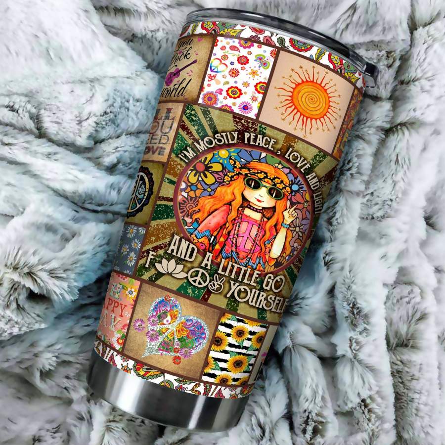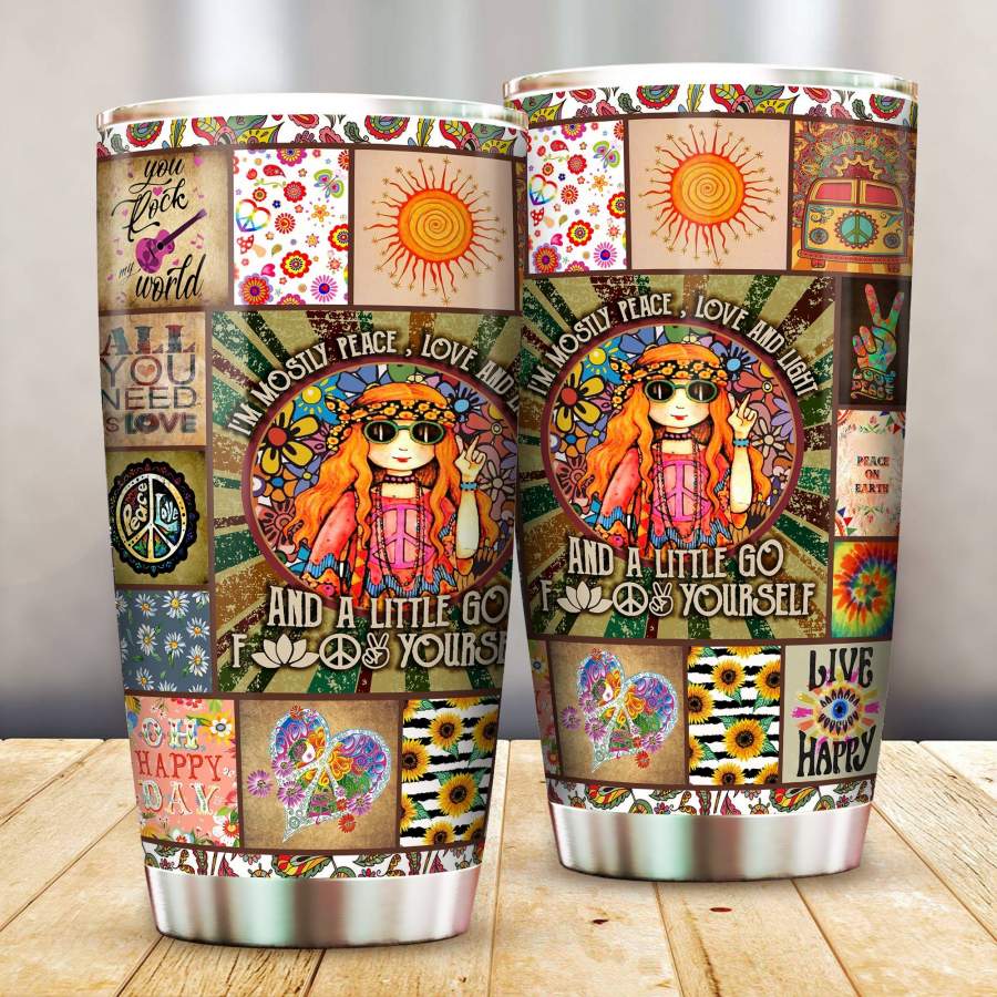 Peace Love And Light Hippie Girl 3D Stainless Steel Insulated Tumbler Cups