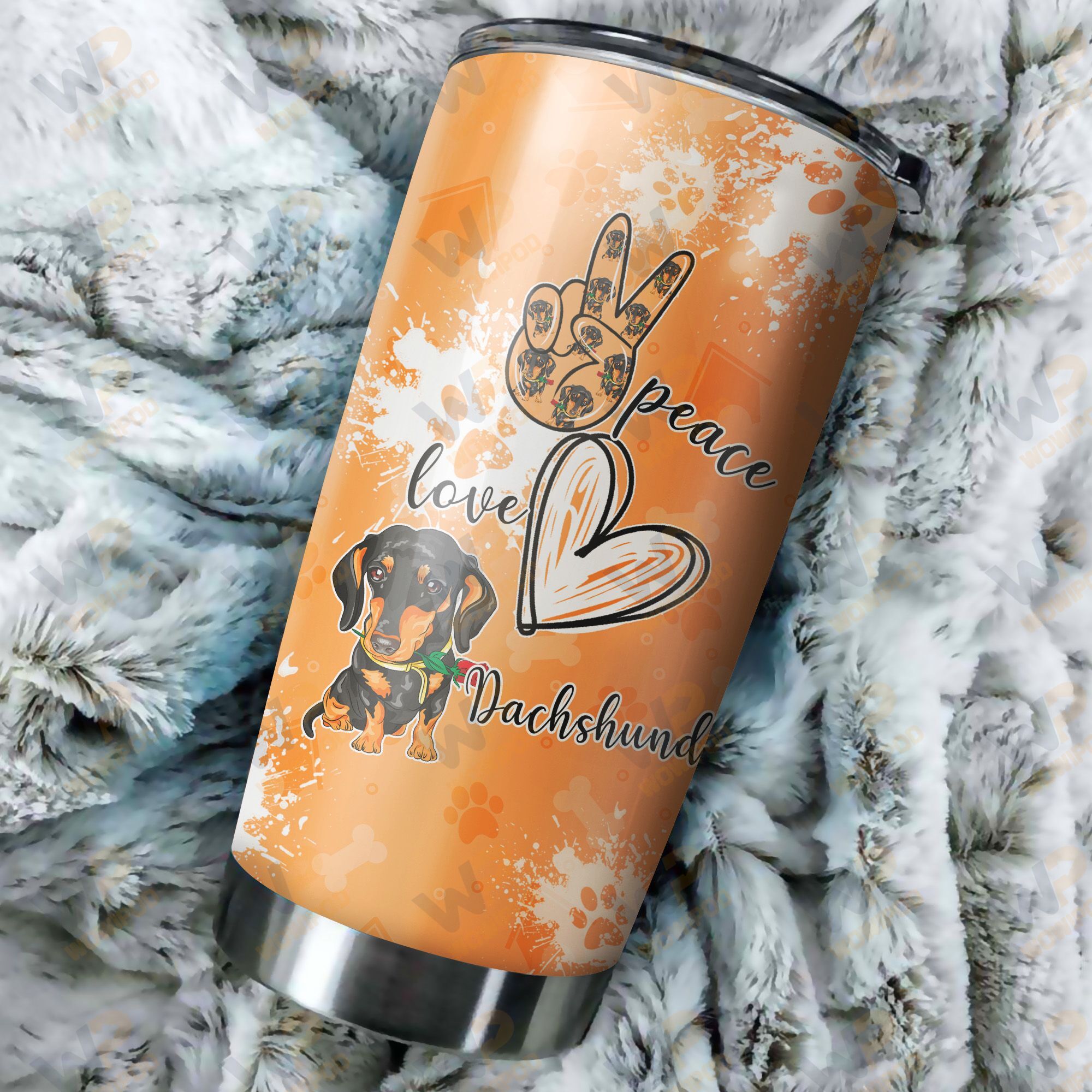 Our print-on-demand products are made with the highest quality materials, ensuring that your personalized Peace love Dachshund, 20 oz stainless steel tumbler cup for dog lover design looks great and feels comfortable. You can wear your new custom product with pride or give it as a unique and memorable gift that will be cherished for years to come.