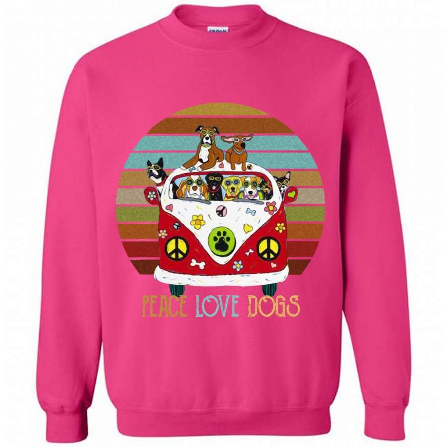 Peace Love Dogs, Hippie Van, Classic Vintage Retro – Gildan Crewneck Sweatshirt