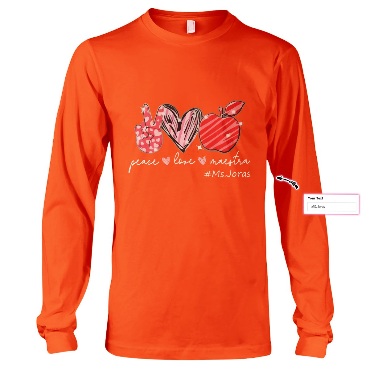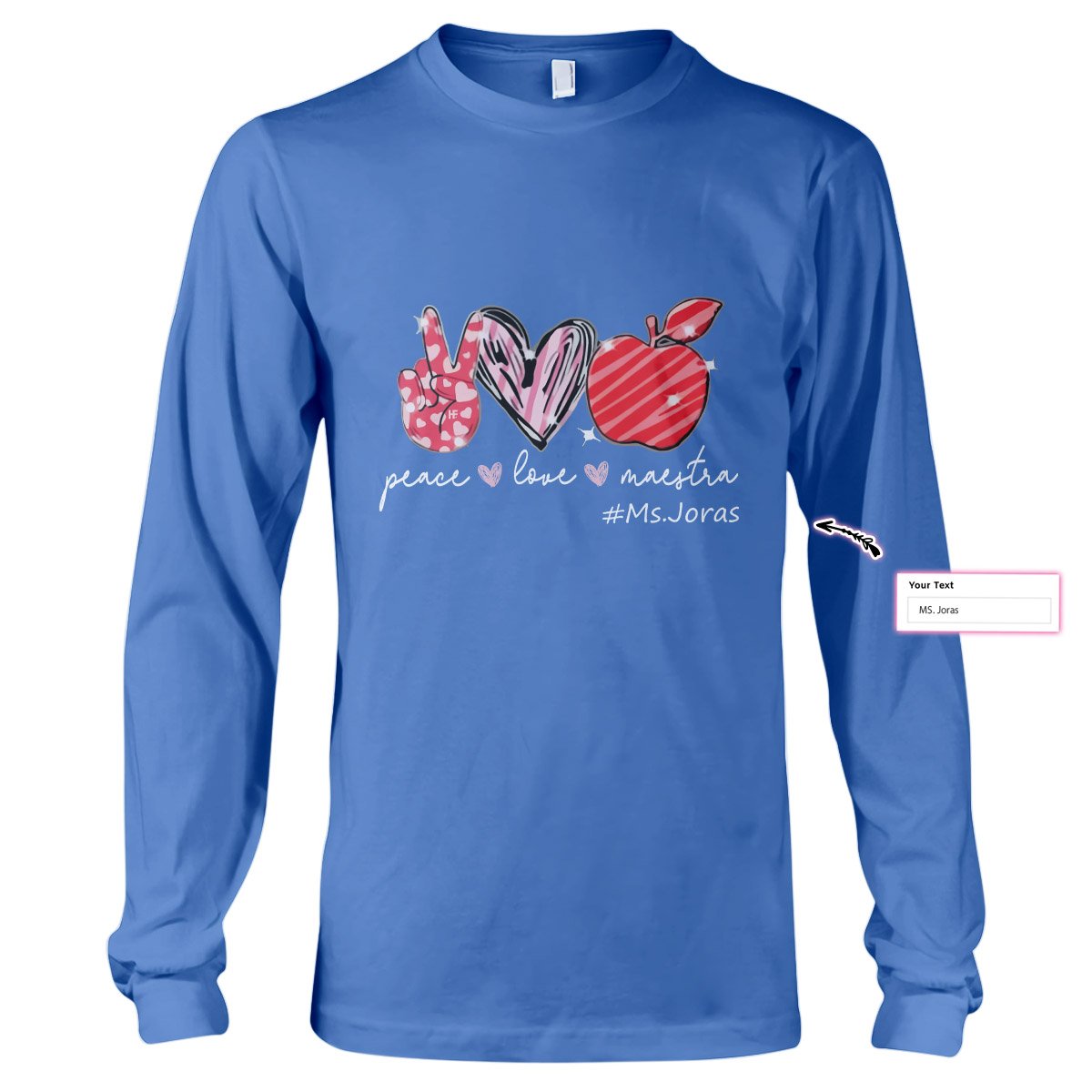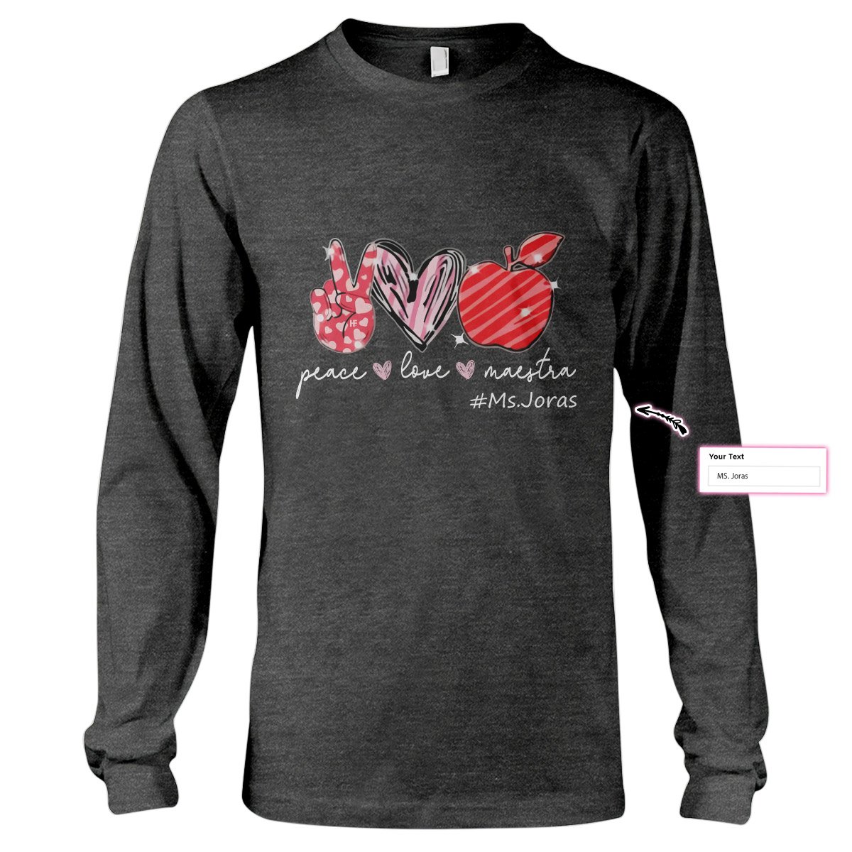 Peace Love Maestra Custom Spanish Teacher Shirt, Custom Teacher Appreciation Long Sleeve T-Shirt